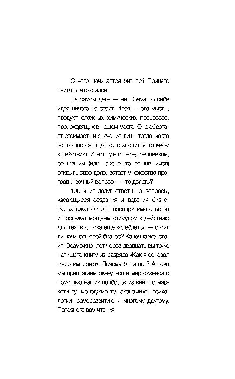 100 книг по основам предпринимательства, экономике, менеждменту, маркетингу, психологии, саморазвитию, биографиям выдающихся личностей, а также полезные художественные произведения, которые смогут многому научить.