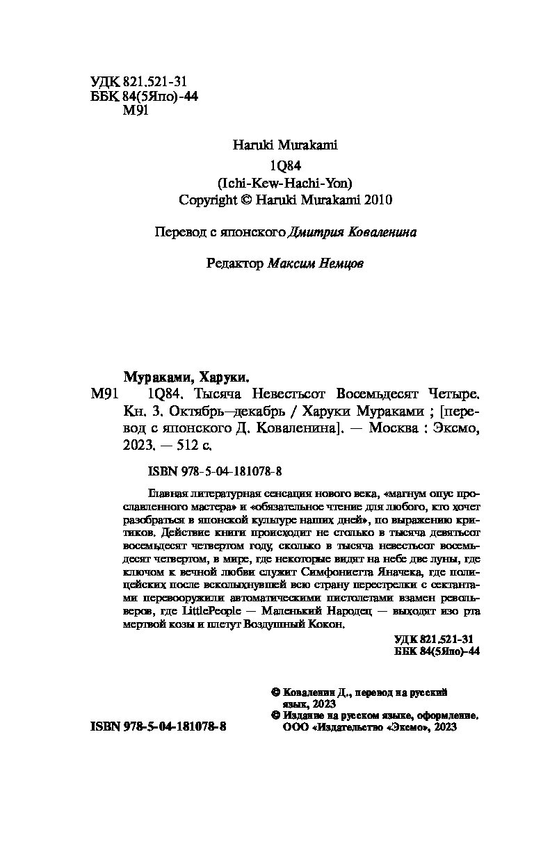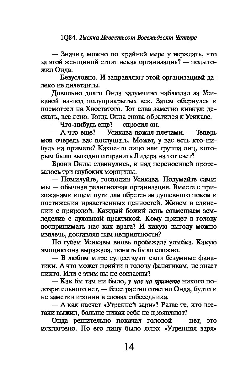 Этот мир, в котором светят две луны, мы называли каждый по-своему, думает Аомамэ. У меня он «1Q84», у него — «Кошачий город».