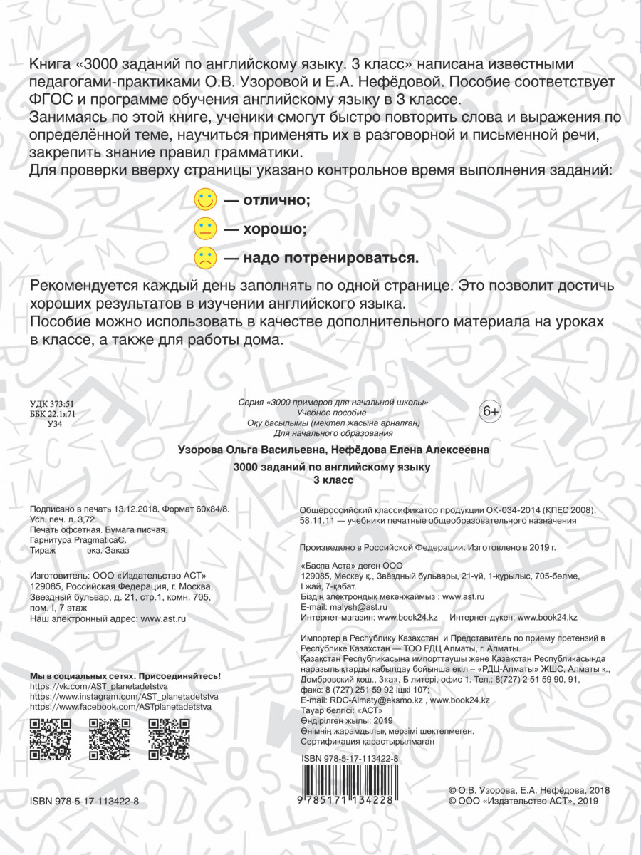 Учебное пособие известных педагогов-практиков О. В. Узоровой и Е. А. Нефёдовой позволит ученикам 3 класса проверить свои знания по английскому языку, а учителю и родителям — проконтролировать их.