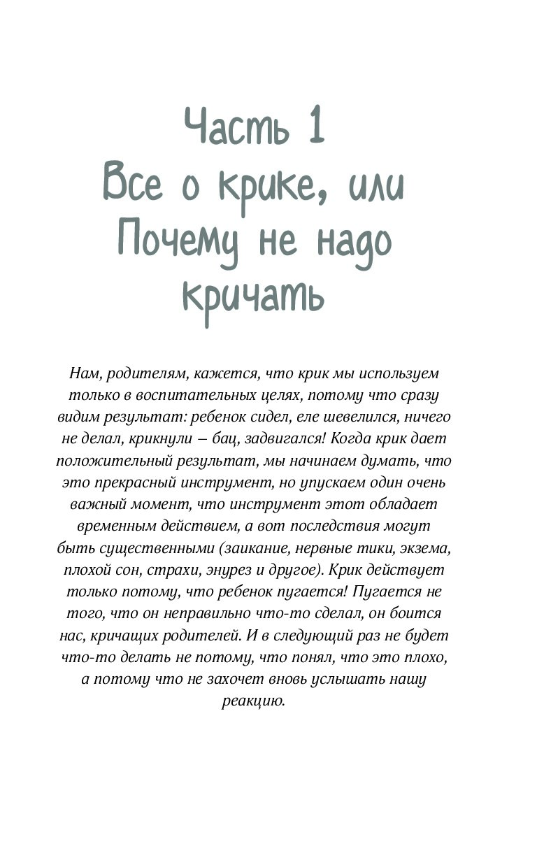 Слишком много информации с советами, как не нужно воспитывать детей, как те или иные действия могут навредить ребенку, но мало кто говорит, а как можно. Елена дает четкие пошаговые действия, которые приводят к положительному результату. Автор делится лайфхаками, как стать не кричащей мамой.
