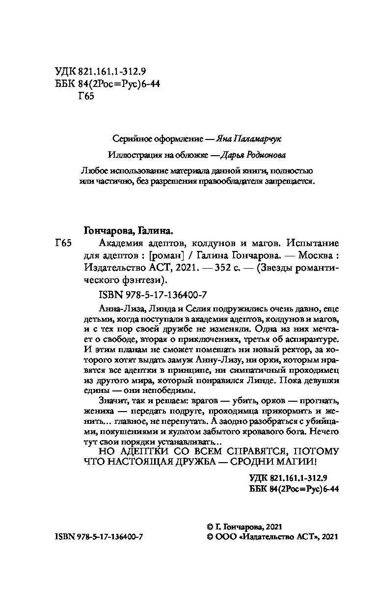 «Испытание для адептов» ‒ первая книга дилогии «Академия адептов, колдунов и магов» от признанного мастера в жанре фэнтези Галины Гончаровой.
