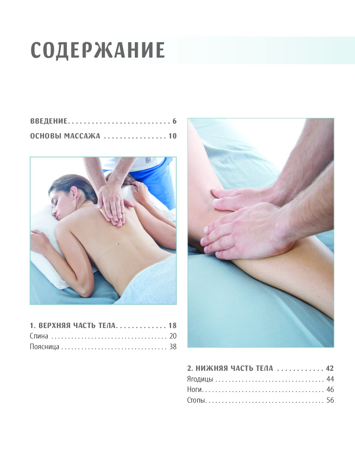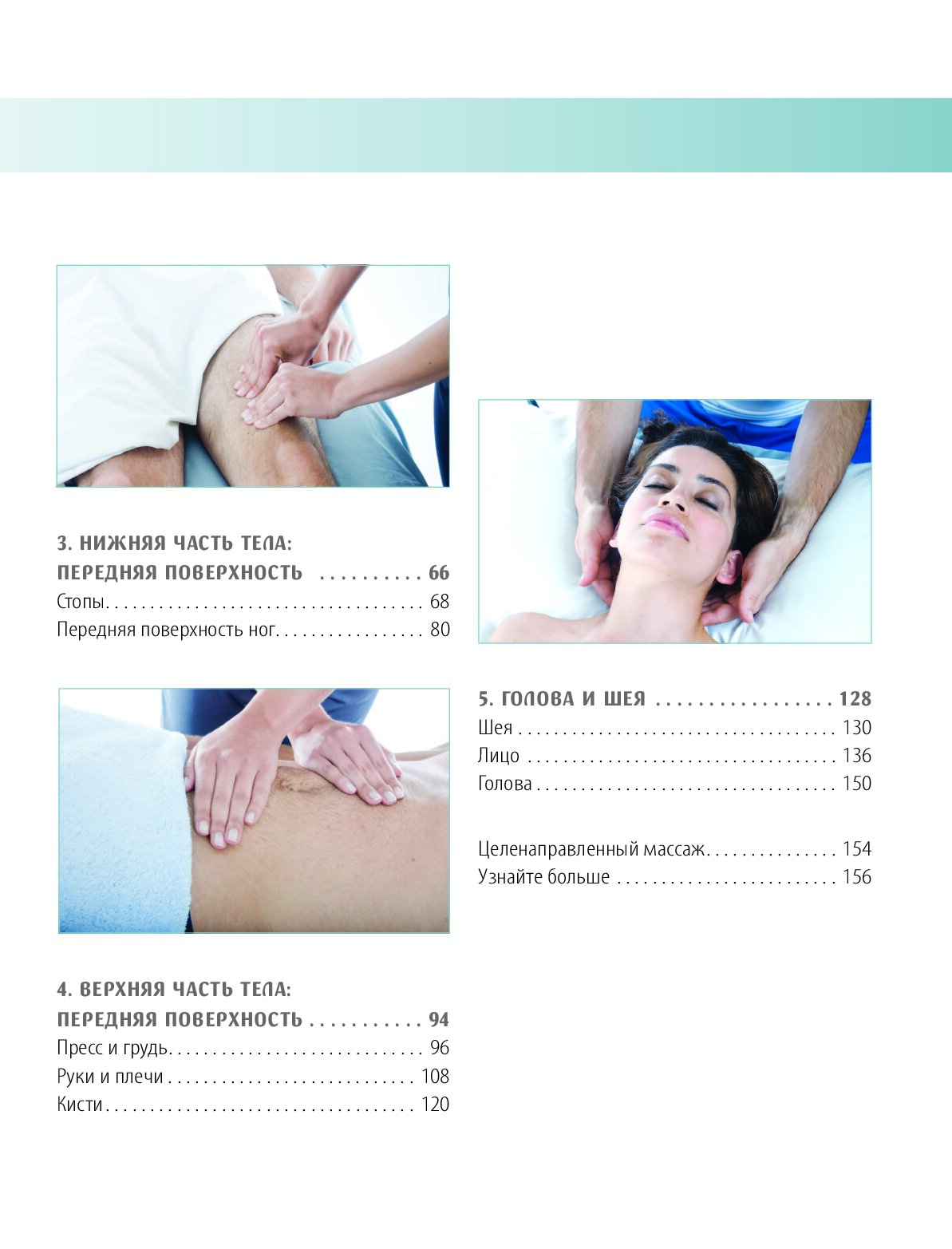 • пошаговые инструкции по массажу спины, рук, плеч, ног, ступней, ягодиц, головы и шеи;