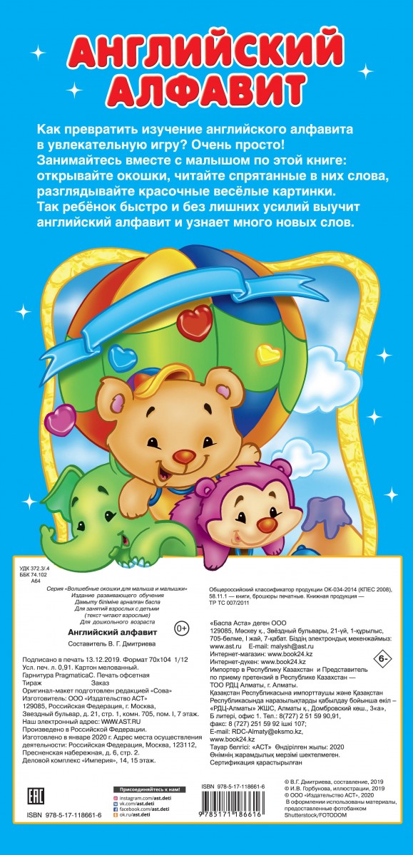 «Английский алфавит 32 окошка» — это незаменимое пособие для ребёнка-дошкольника. Красочно иллюстрированная книга с окошками-клапанами познакомит малыша с буквами английского алфавита и поможет ему выучить свои первые английские слова.