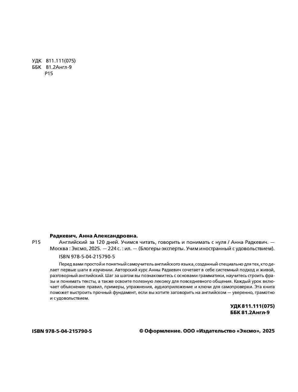 Автор книги — Анна Радкевич, опытный преподаватель и создательница популярного блога, разработала методику, которая помогает новичкам не запутаться в грамматике и сразу начать говорить.