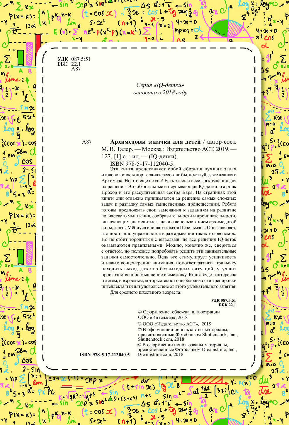 —Книга «Архимедовы задачки для детей» Талер М.В.