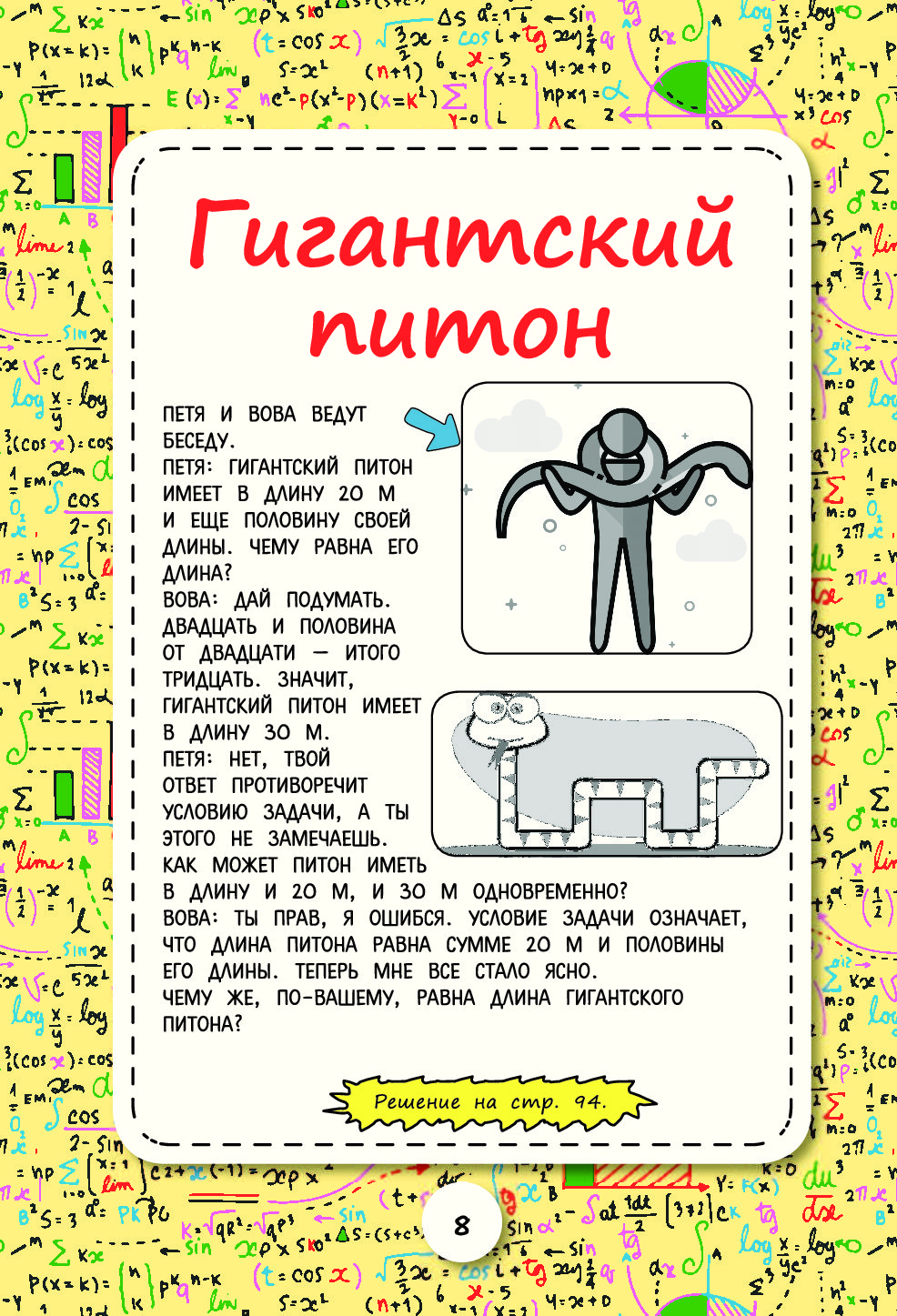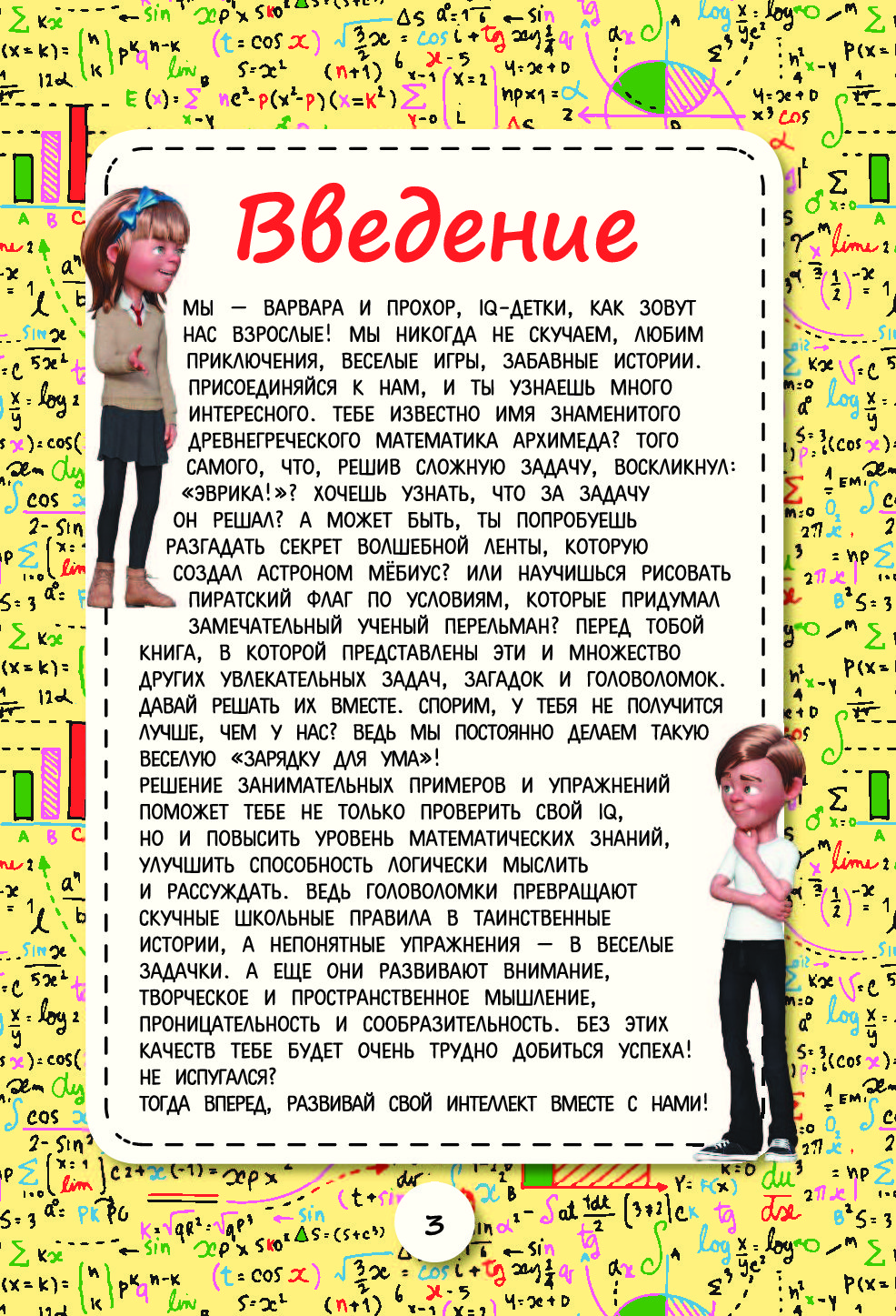 Ты с юных лет зачитывался историями об открытияхАрхимеда, парадоксах ленты Мёбиуса, увлекалсяголоволомками Перельмана и других ученых, но считаешь, что решать задачки на логику и сообразительность в одиночестве скучно? С этой книгой ты сможешь навсегда позабыть о скуке! Ведь теперь рядом с тобой умные и верные друзья - обаятельные IQ-детки: озорник Прохор и его рассудительная сестра Варя. Они с удовольствиемпрокомментируют, а то и решат за тебя самые интересные задачи и занимательные головоломки, многие из которых, пожалуй, поставили бы в тупик даже изобретательного Архимеда. Ребята заявляют, что стали настоящими специалистами в этом деле. Сможешь ли ты довериться их авторитетному мнению или все же рискнешь проверитьответы? Не ошибись! Вместе вы сможете начертить план сада, найдете способы узнать массу котят и гиппопотама и даже примете участие в судебном заседании. Решение задач, которые собраны в этой книге, стимулирует усидчивость и проницательность, учит концентрации внимания и способности находить выход из безвыходных ситкуаций, улучшает пространственное мышление и повышает эрудицию. В компании Прохора и Вари самая сложная задачка покажется проще и понятнее. Да и искать ответ вместе будет гораздо интереснее и веселее!