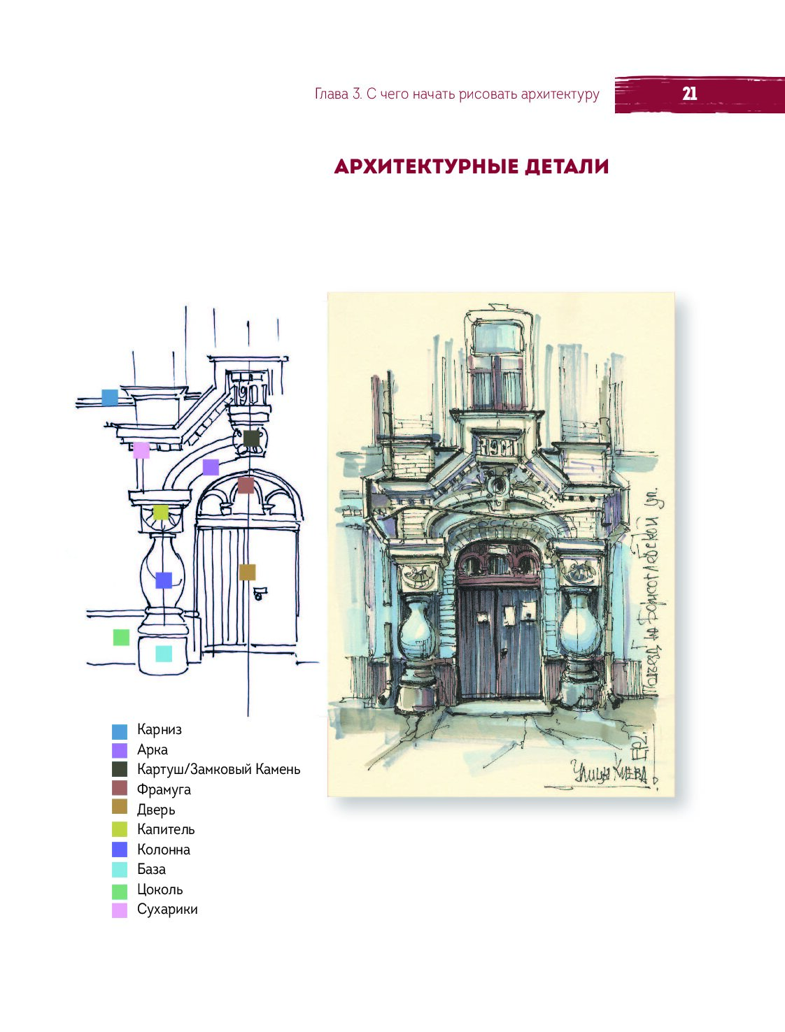 – изучите основы рисования архитектуры: от первой линии и штриха до построения сюжета и создания текстуры;