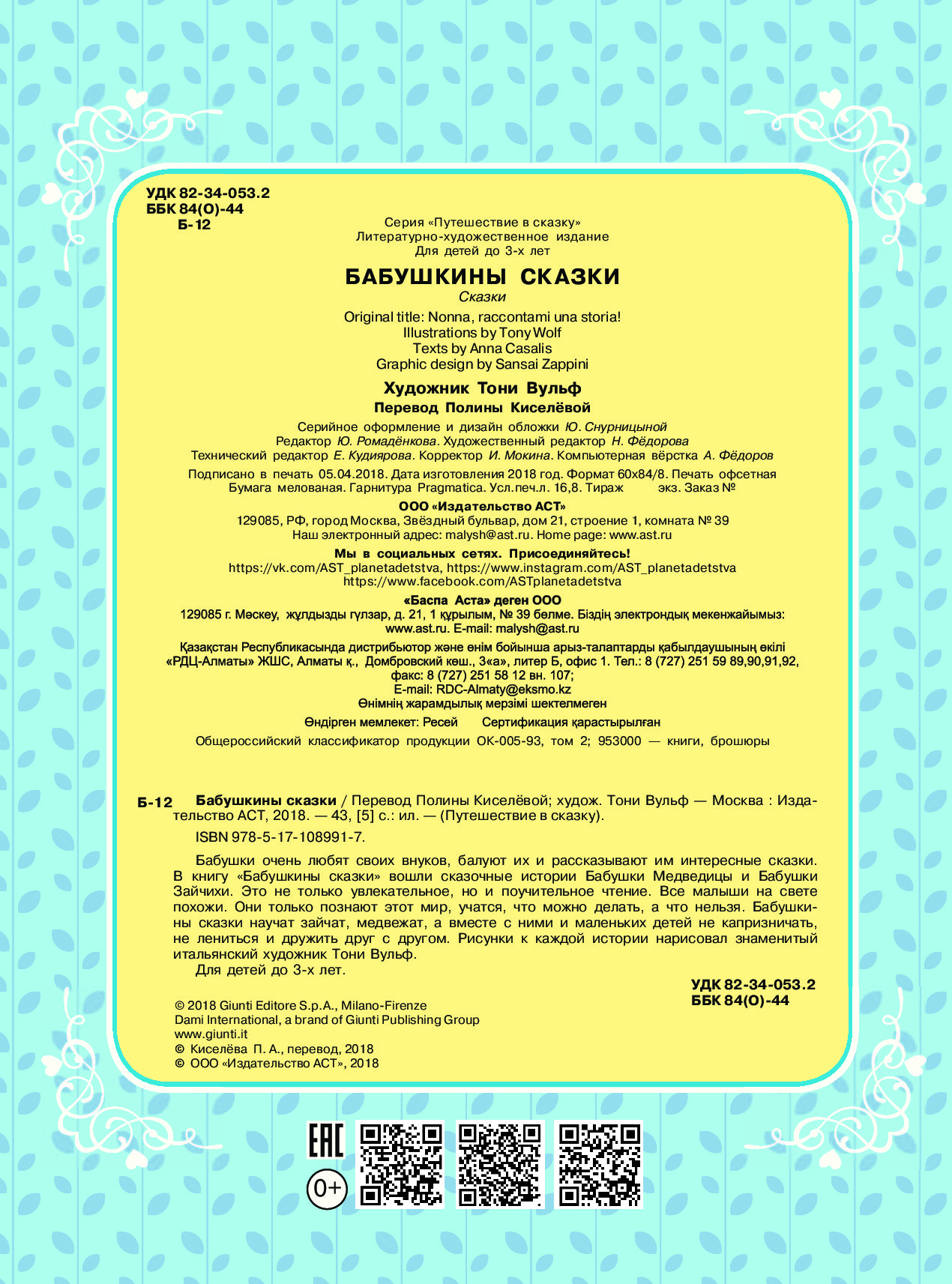 В интернет-магазине Book24.kz можно заказать и купить книгу Бабушкины сказки недорого с адресной доставкой по Казахстану. Воспользовавшись нашим сервисом, Вам не придется долго ждать заказ. В течение 1-9 дней товар доставляется в любой город – Актау, Актобе, Атырау, Караганду, Кокшетау, Костанай, Кызылорду, Павлодар, Петропавловск, Талдыкорган, Тараз, Уральск, Усть-Каменогорск, Шымкент, Алматы, Астану и другие. У нас на сайте можно просмотреть фото, ознакомиться с кратким содержанием книги и отзывами читателей. Предлагаем выгодные условия продажи: доступные цены, оперативную доставку. Все книги в наличии.