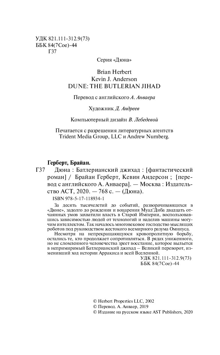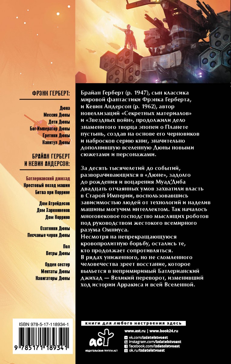 В книжном интернет-магазине Book24.kz можно заказать и купить книгу Батлерианский джихад по выгодной цене, гораздо ниже, чем в оффлайн книжных магазинах. Чтобы приобрести интересующее издание, необходимо всего лишь выбрать его из каталога и оформить заказ в режиме онлайн или по телефону. Предварительно вы можете просмотреть у нас на сайте фото и краткое содержание книги, почитать отзывы. Заказы мы отправляем во все города РК: Алматы, Астана, Актау, Актобе, Атырау, Караганда, Кокшетау, Костанай, Кызылорда, Павлодар, Петропавловск, Талдыкорган, Тараз, Уральск, Усть-Каменогорск, Шымкент, и другие. Доставка занимает несколько дней. Воспользовавшись нашим сервисом, вы уже вскоре сможете наслаждаться чтением любимой книги.