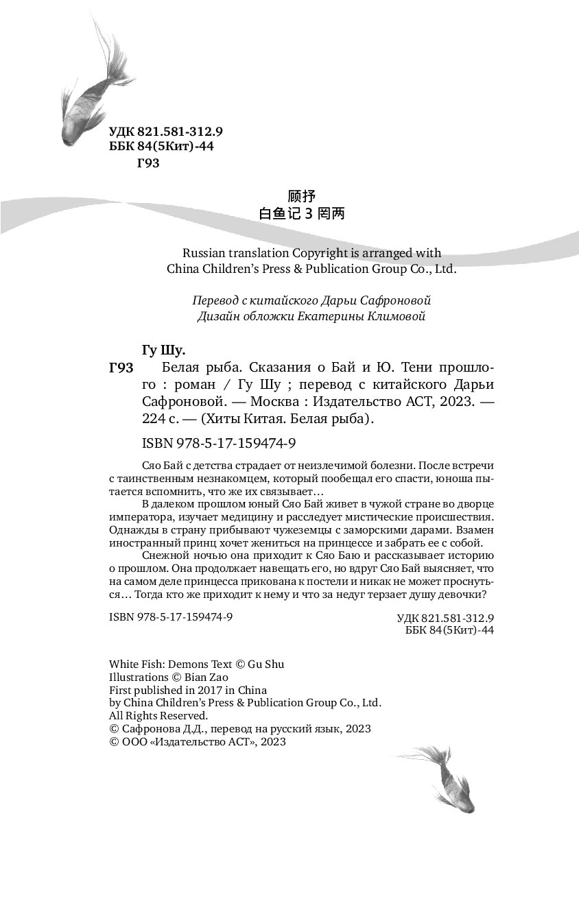 • Продолжение трогательной мистической истории о дружбе и доброте. Третья книга многожанрового цикла «Белая рыба. Сказания о Бай и Ю»!