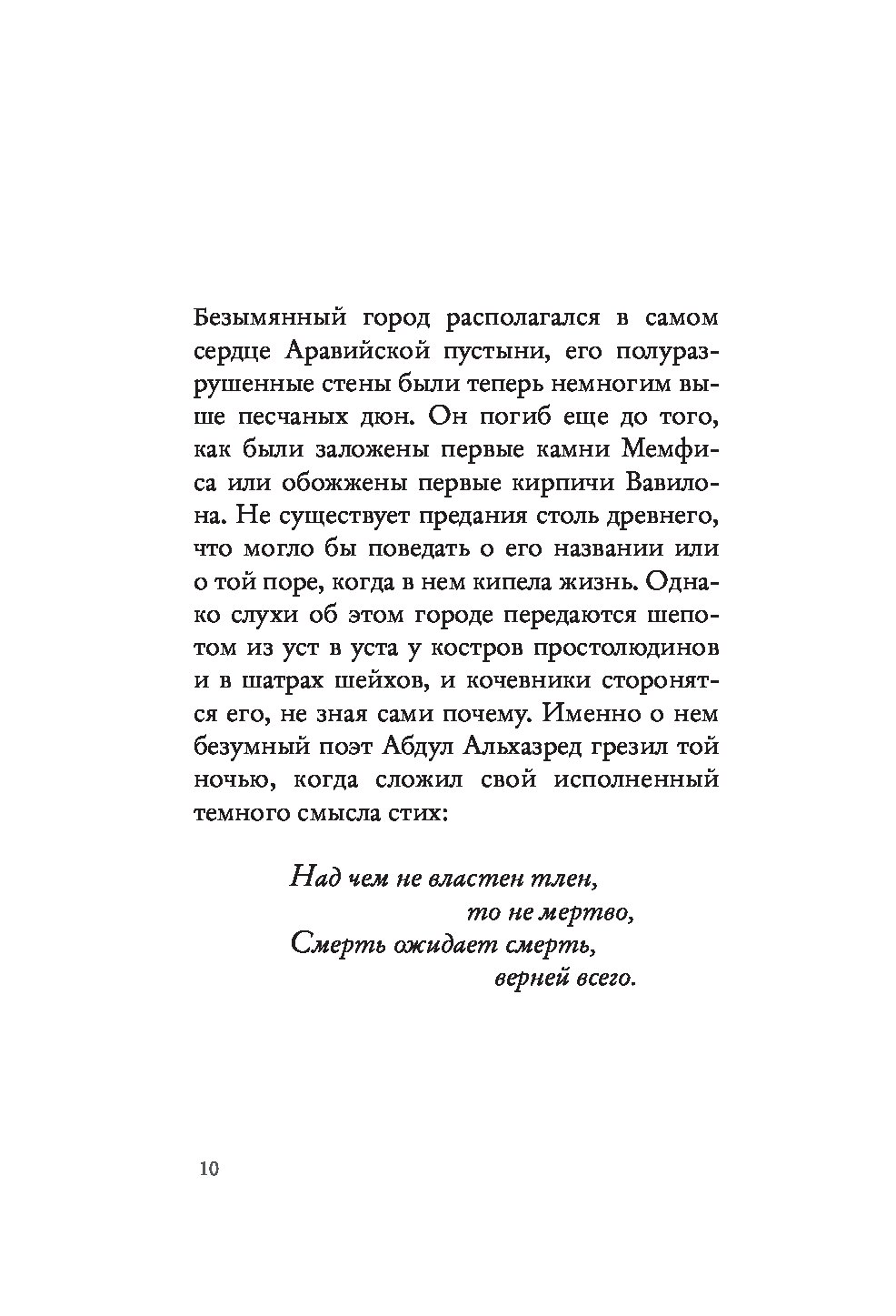 В самом сердце Аравийской пустыни лежат развалины древнего города. Жители окрестных поселений считают его проклятым, а караваны обходят стороной. Ведомый непреодолимым наваждением, исследователь находит руины и спускается в их недра. Увиденное там едва не лишает его рассудка…