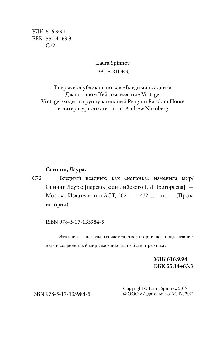 —Книга «Бледный всадник: как «испанка» изменила мир» Спинни Л.