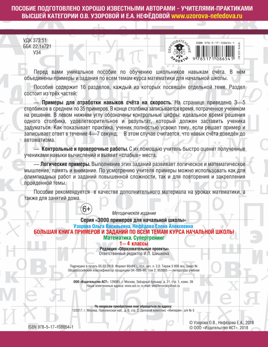—Книга «Большая книга примеров и заданий по всем темам курса начальной школы. 1-4 классы. Математика. Супертренинг» Узорова О.В.