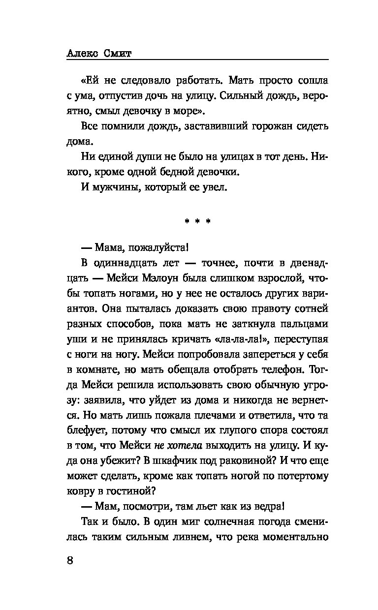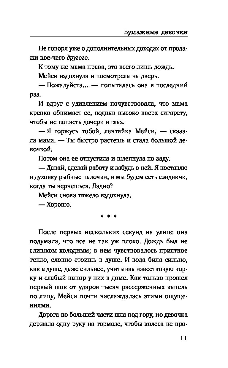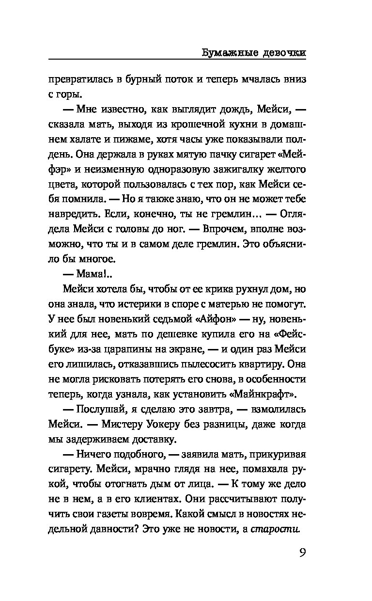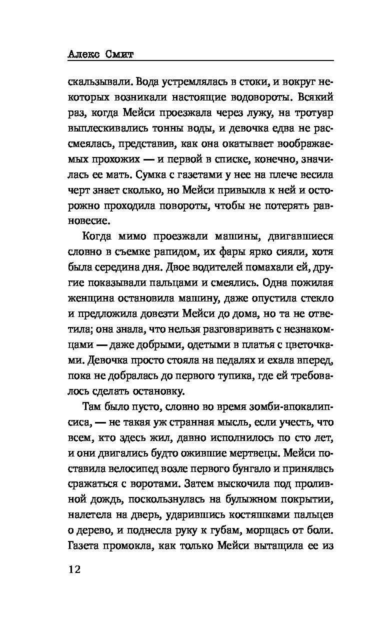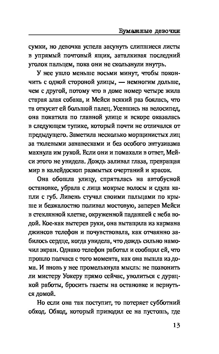 Одиннадцатилетняя Мэйси должна была развозить газеты на своем велике. Лило, конечно, как из ведра, но хозяин платит три фунта в час… хорошие деньги для маленькой девочки. Поэтому Мэйси надела дождевик, взяла сумку с газетами и помчалась сквозь ливень по давно знакомому маршруту.