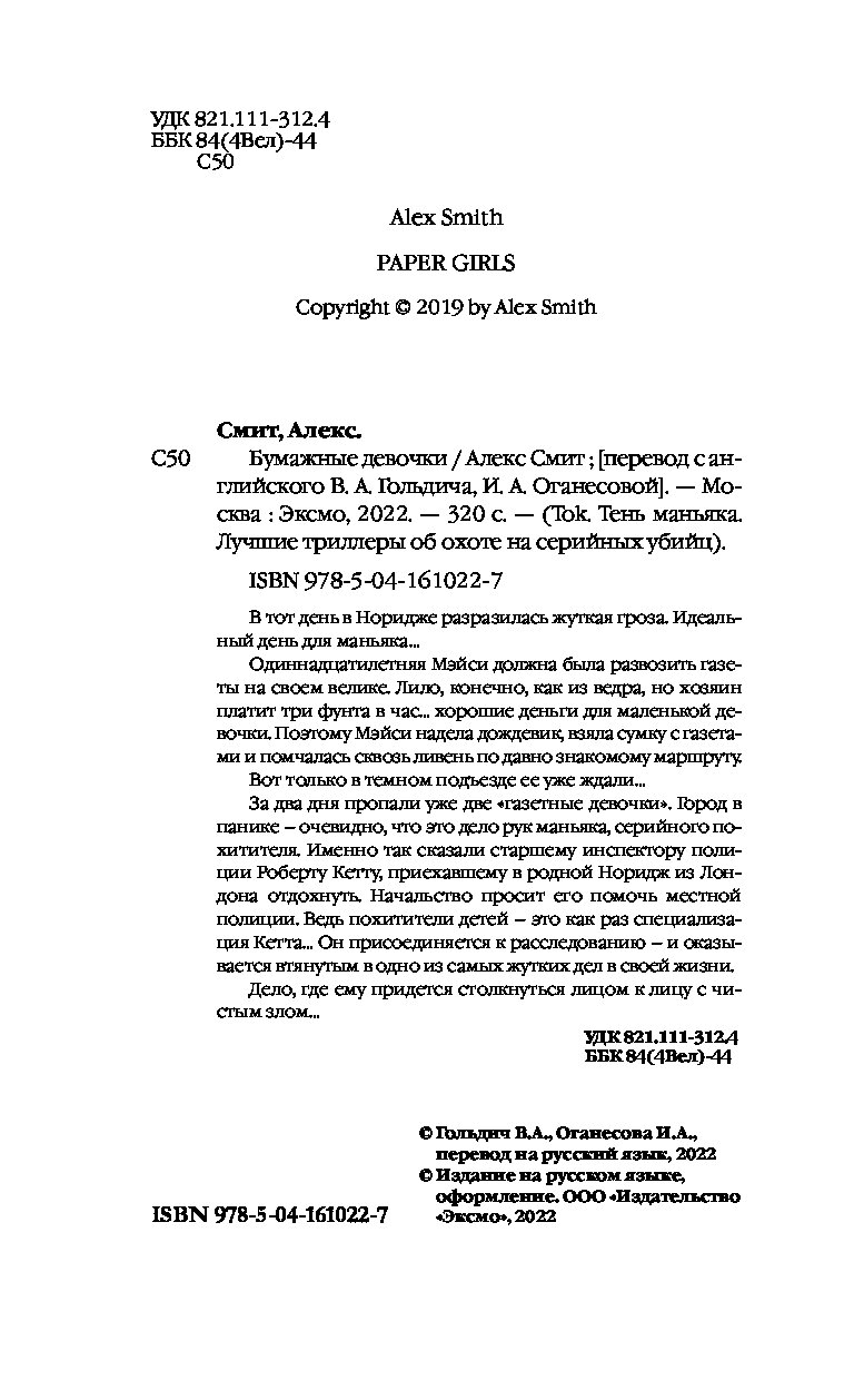 За два дня пропали уже две «газетные девочки». Город в панике — очевидно, что это дело рук маньяка, серийного похитителя. Именно так сказали старшему инспектору полиции Роберту Кетту, приехавшему в родной Норидж из Лондона отдохнуть. Начальство просит его помочь местной полиции. Ведь похитители детей — это как раз специализация Кетта… Он присоединяется к расследованию — и оказывается втянутым в одно из самых жутких дел в своей жизни.