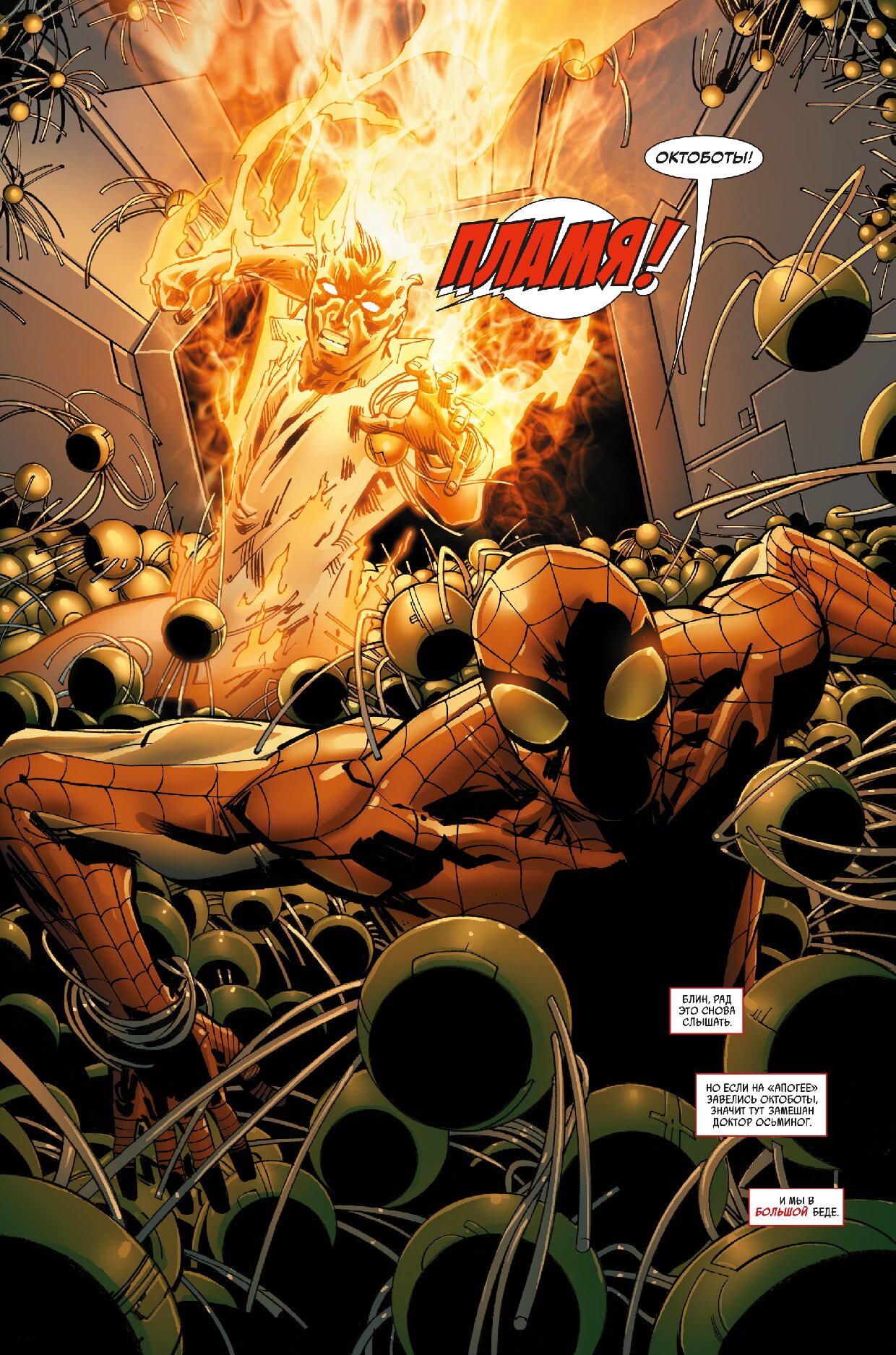 Человек-паук объединяется с Сорвиголовой, чтобы обелить имя Чёрной Кошки, однако что, если она не так уж и невинна, как считает наш герой? Эксперимент лаборатории «Горизонт» даёт Паучку заглянуть в завтрашний день… и увидеть там разрушенный Нью-Йорк! Сможет ли стенолаз распутать клубок загадок и предотвратить катастрофу? Доктор Осьминог обещает восстановить озоновый слой Земли, и люди этому рады, но Человек-паук чует подвох! Теперь он враг целого мира… Как паутиноплёту спасти планету, когда Зловещая Шестёрка и всё человечество против него? Также в сюжете: Мстители!