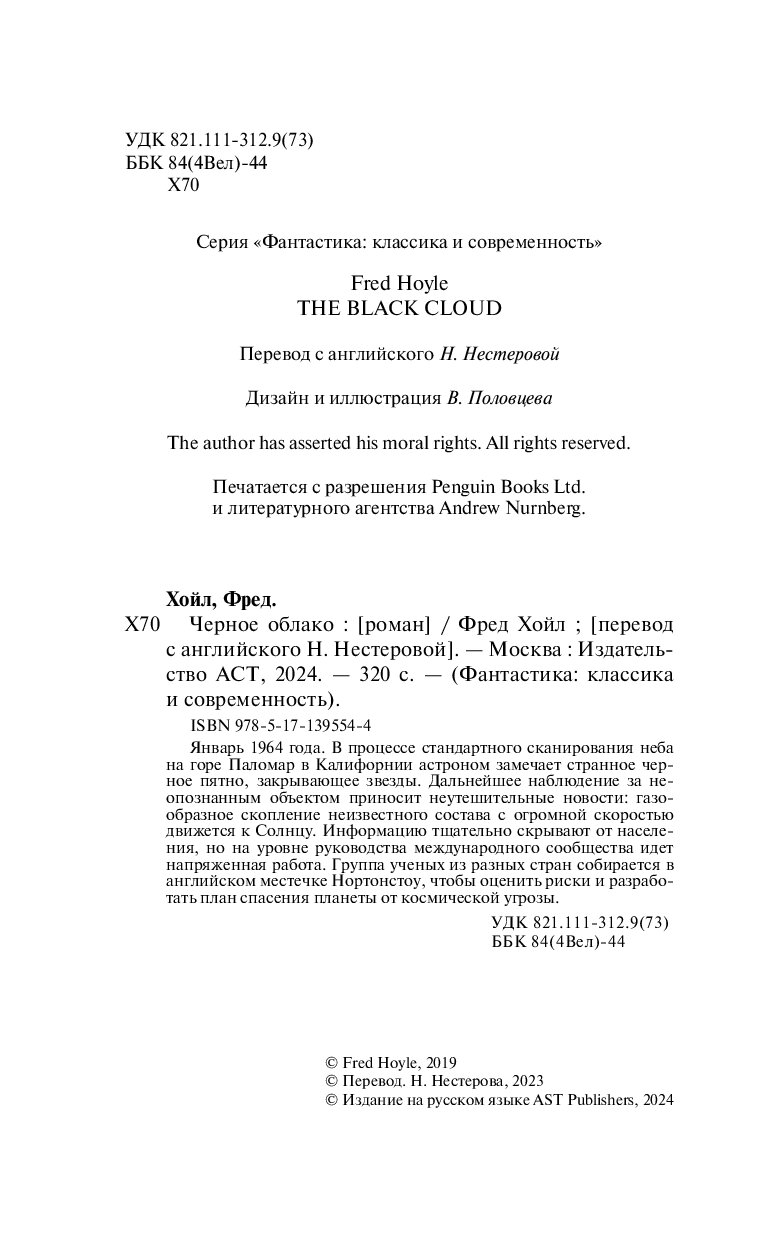 В книжном интернет-магазине Book24.kz можно заказать и купить книгу Черное облако по выгодной цене, гораздо ниже, чем в оффлайн книжных магазинах. Чтобы приобрести интересующее издание, необходимо всего лишь выбрать его из каталога и оформить заказ в режиме онлайн или по телефону. Предварительно вы можете просмотреть у нас на сайте фото и краткое содержание книги, почитать отзывы. Заказы мы отправляем во все города РК: Алматы, Астана, Актау, Актобе, Атырау, Караганда, Кокшетау, Костанай, Кызылорда, Павлодар, Петропавловск, Талдыкорган, Тараз, Уральск, Усть-Каменогорск, Шымкент, и другие. Доставка занимает несколько дней. Воспользовавшись нашим сервисом, вы уже вскоре сможете наслаждаться чтением любимой книги.