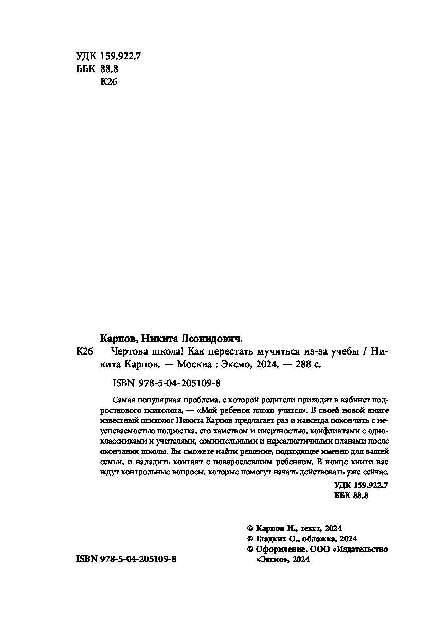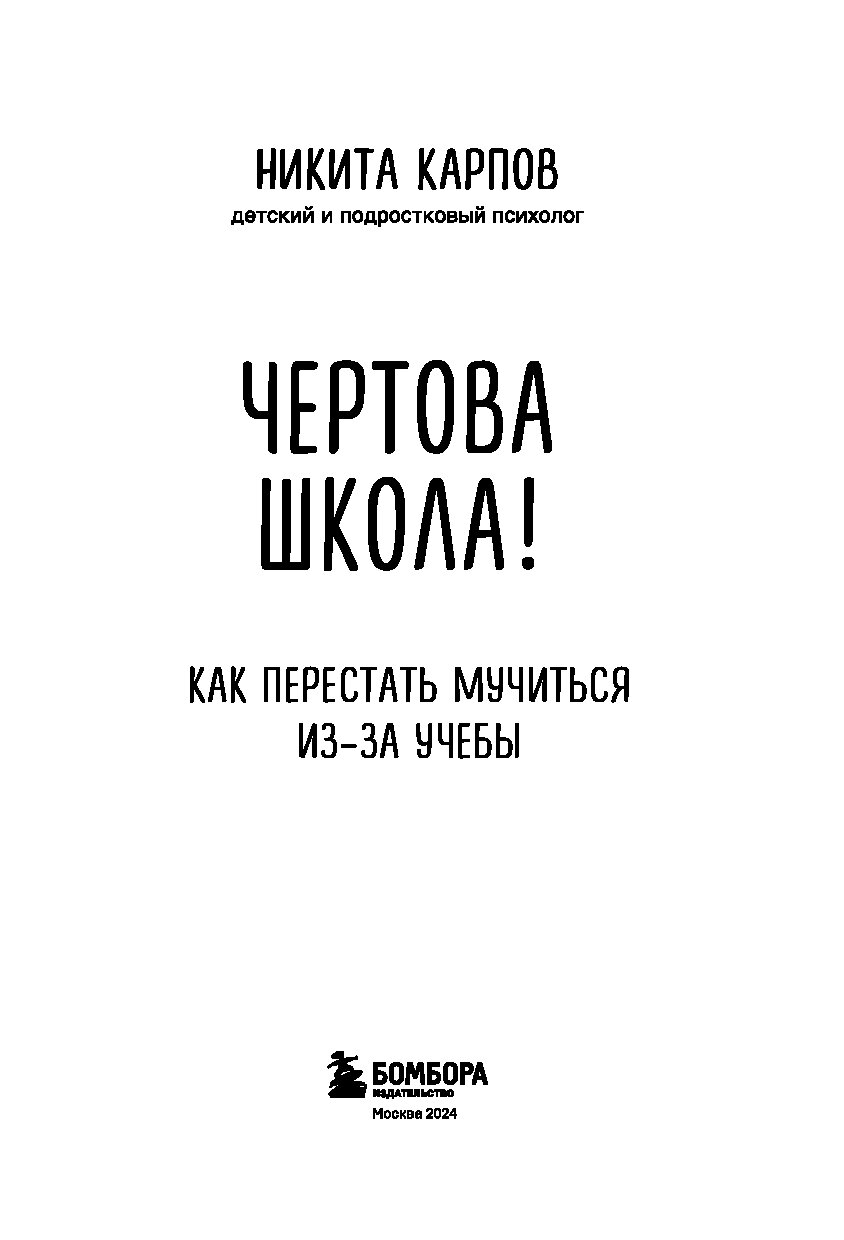 Подростковый психолог Никита Карпов за 20 лет практики постоянно сталкивается с этими проблемами. Его консультации помогли уже тысячам семей. В своей популярной серии, посвященной воспитанию подростков, он берется за самую наболевшую тему — учебы в школе. Никита Карпов предлагает прочитать его книгу и раз и навсегда покончить с этим ужасом.