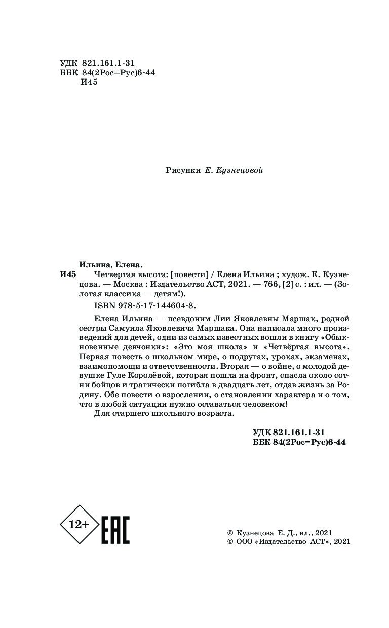 —Книга «Четвертая высота. Это моя школа» Ильина Е.Я.