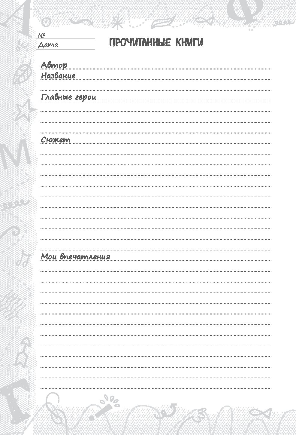 • Запиши основной сюжет и героев ПРОЧИТАННЫХ КНИГ. Всего здесь вместится 46 КНИГ!