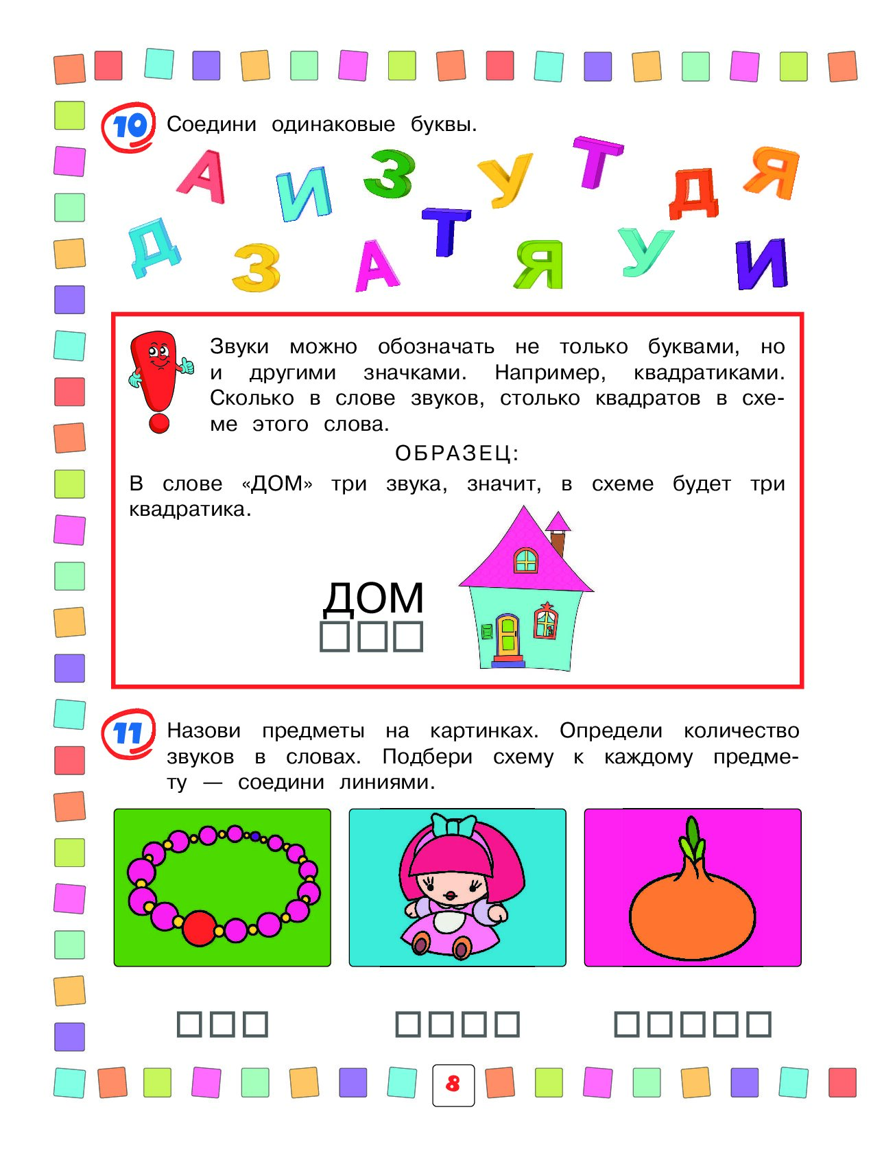 Для того, чтобы процесс обучения чтению был последовательным и эффективным, авторы использовали классическую схему: буквы-слоги-слова-предложения-тексты.