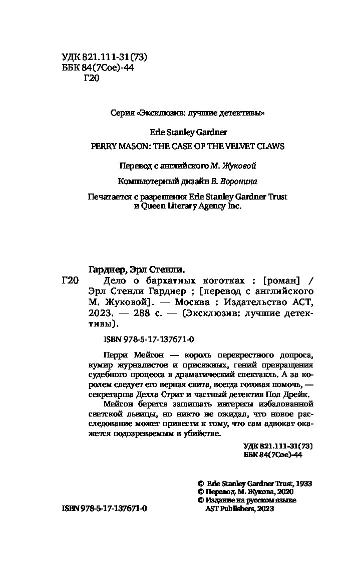 — «Дело о бархатных коготках» Гарднер Э.С.