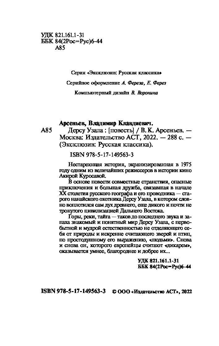 Если вы хотите заказать и купить книгу Дерсу Узала недорого с доставкой, то в интернет-магазине Book24.kz сделать это можно простым и удобным способом, оформив заказ в режиме онлайн. Для удобства выбора все книги распределены по разделам и подразделам, к тому же, благодаря навигации, поиск необходимого издания займет у вас всего несколько минут. У нас на сайте вы можете ознакомиться с кратким содержанием книги, почитать отзывы покупателей и просмотреть фото. Адресную доставку заказов по Казахстану гарантируем. Отправляем Казпочтой книги во все города книгу в Алматы, Астана, Актау, Актобе, Атырау, Караганда, Кокшетау, Костанай, Кызылорда, Павлодар, Петропавловск, Талдыкорган, Тараз, Уральск, Усть-Каменогорск, Шымкент, и другие города. Доставка занимает 1-9 дней. У нас выгодные условия продажи, в чем вы убедитесь, воспользовавшись нашим сервисом.