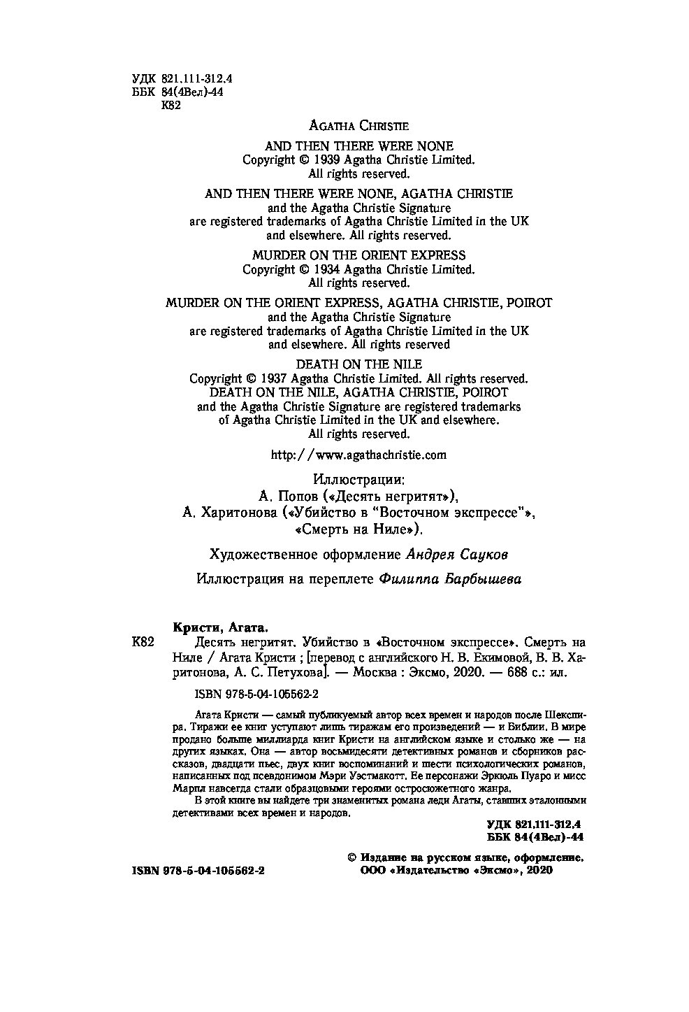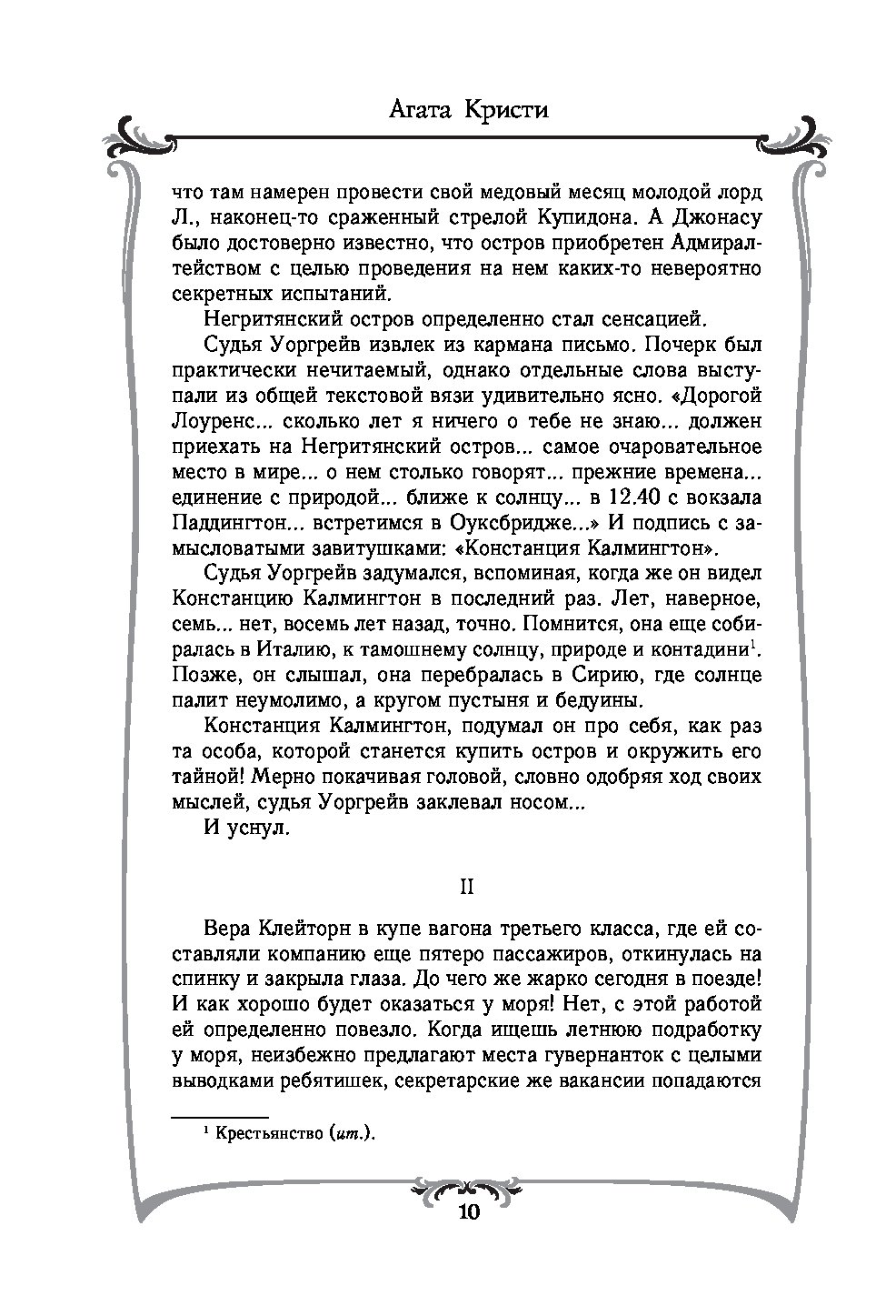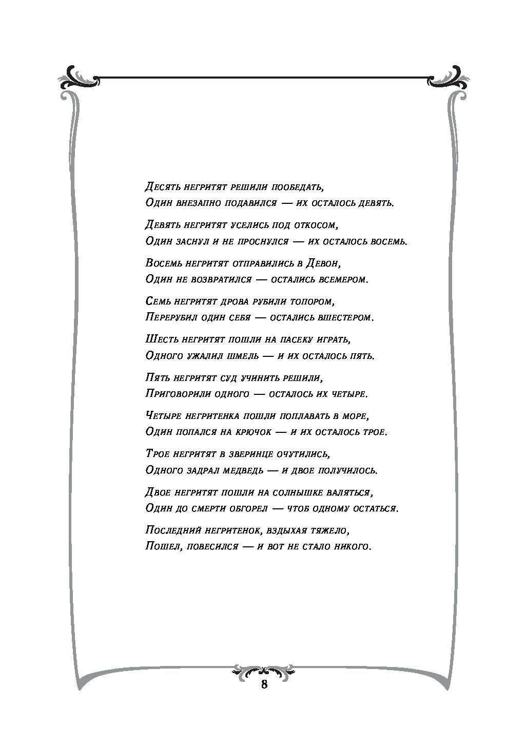 Роман «Десять негритят» — один из величайших детективных произведений в истории. Выпущенный общим тиражом более 100 000 000 экземпляров, он занимает пятое место в списке бестселлеров художественной литературы всех времен — и безусловное первое место среди романов самой Агаты Кристи.