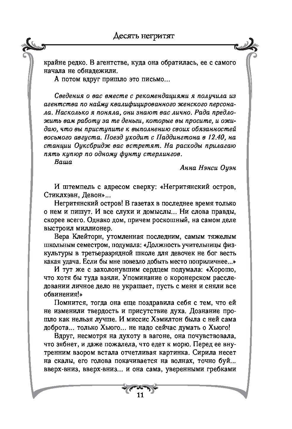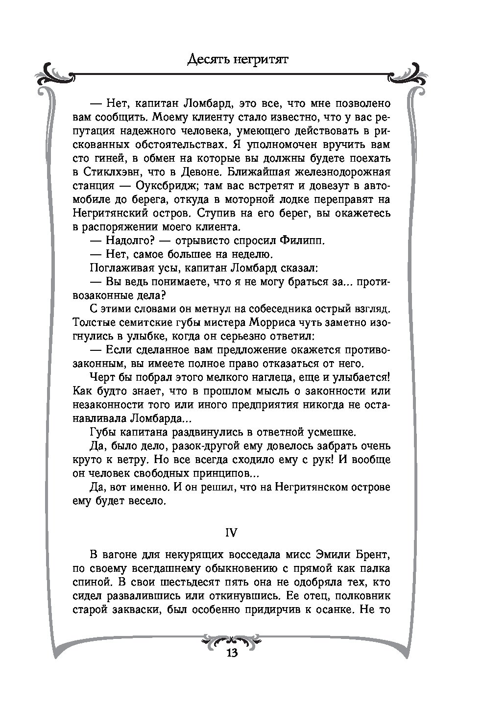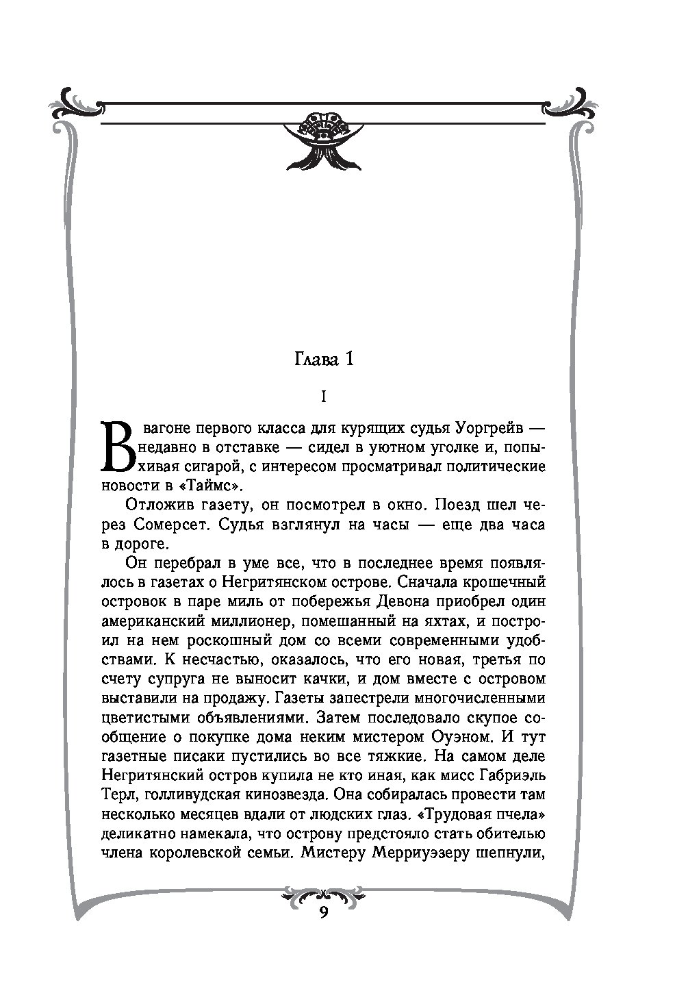 Роман «Десять негритят» — один из величайших детективных произведений в истории. Выпущенный общим тиражом более 100 000 000 экземпляров, он занимает пятое место в списке бестселлеров художественной литературы всех времен — и безусловное первое место среди романов самой Агаты Кристи.