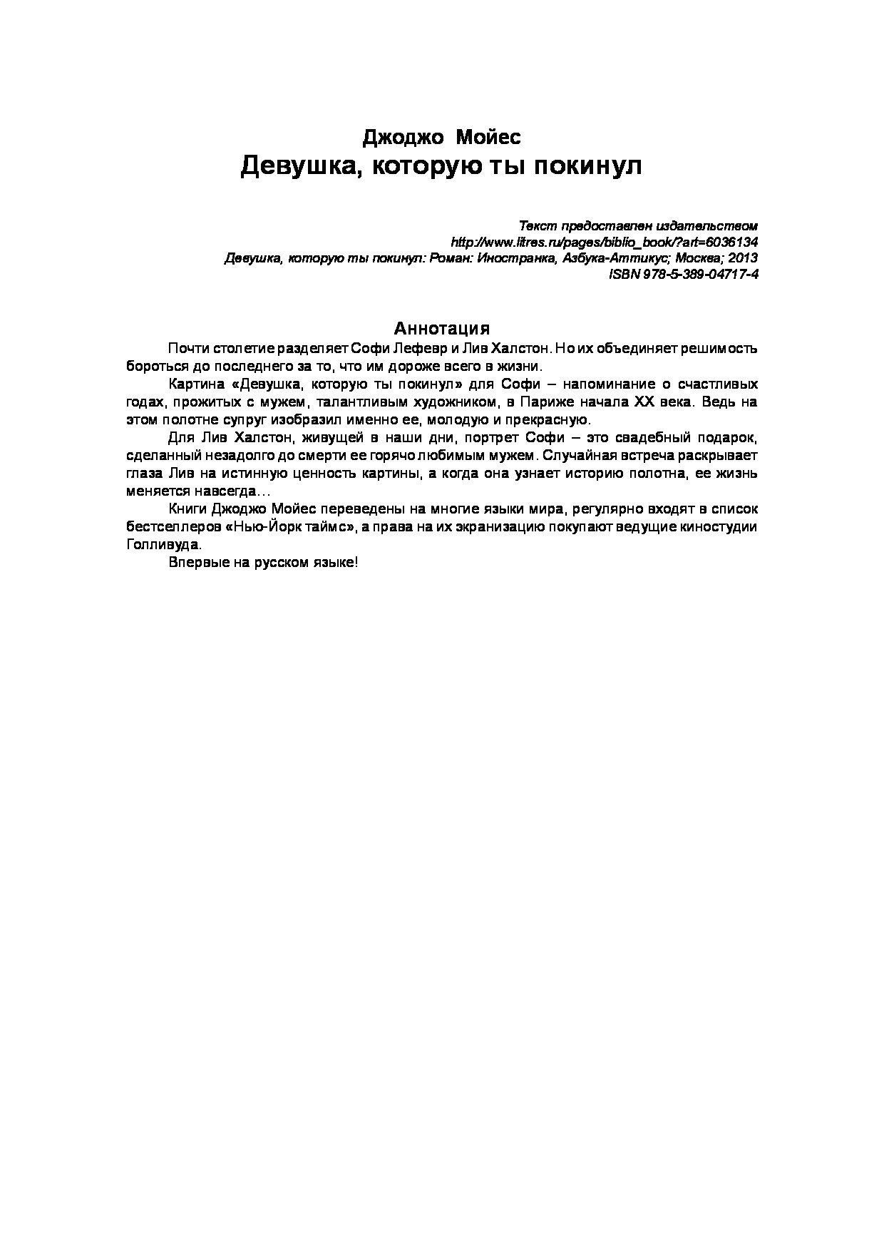 —Книга «Девушка, которую ты покинул» Мойес Дж.