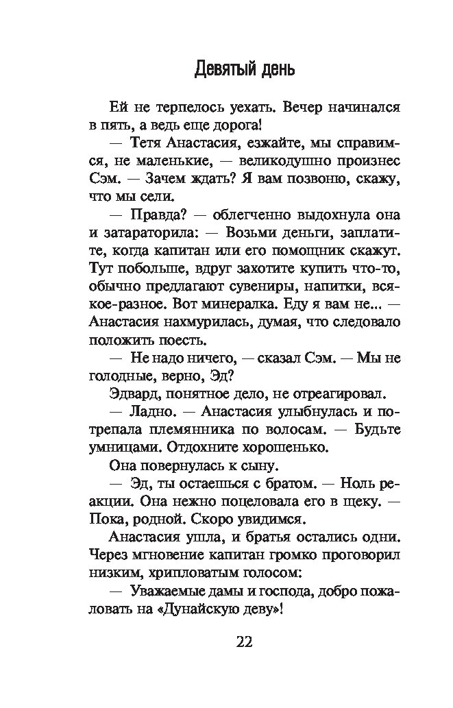 Настала пора возвращаться, однако все вокруг изменилось, даже капитан перестал узнавать местность. Катер по-прежнему двигался по реке, хотя все приборы и механизмы перестали работать, а связь пропала. Потом слишком рано начало темнеть…