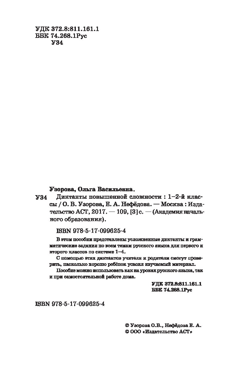 —Книга «Диктанты повышенной сложности. 1 - 2 классы» Узорова О.В., Нефедова Е.А.