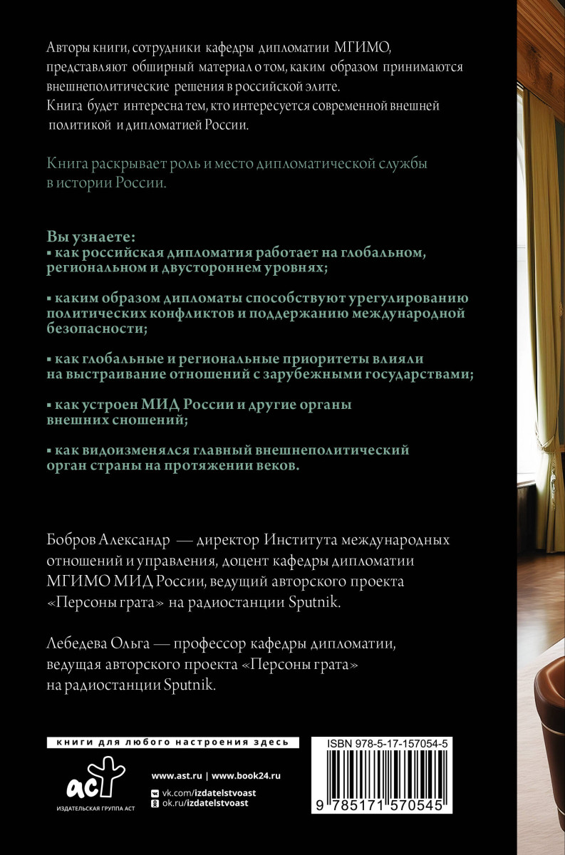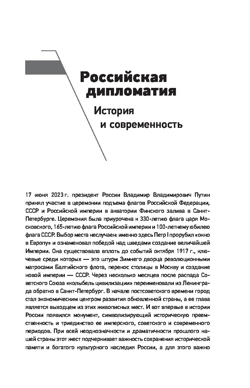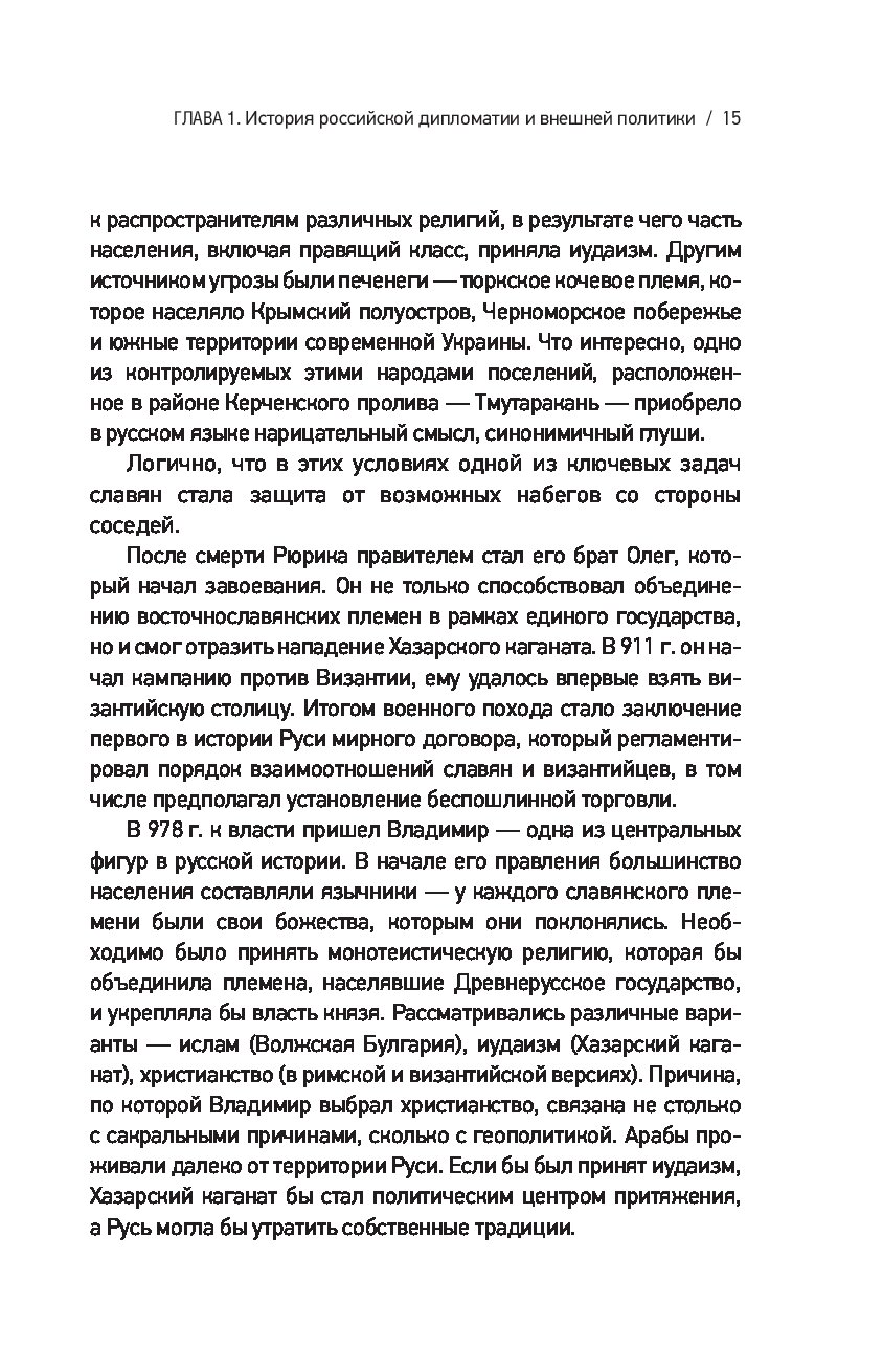 Книга раскрывает роль дипломатической службы в истории развития России и говорит о том, как разные приоритеты и стратегии влияли на отношения с зарубежными партнерами. Вы узнаете о глобальных и региональных приоритетах российской дипломатии, об устройствах ведомств и их стратегиях. Для тех, кто хочет узнать о политических процессах современной России еще больше.