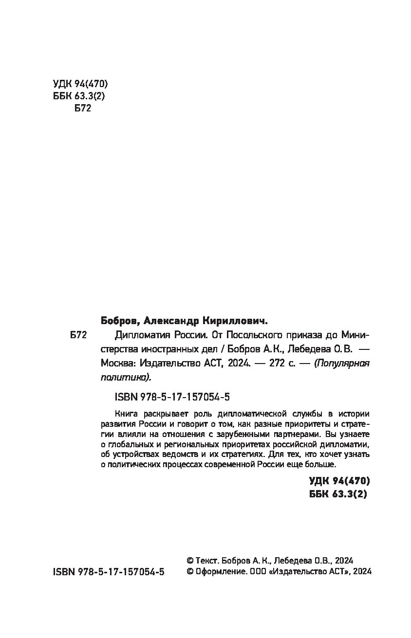 — «Дипломатия России. От Посольского приказа до Министерства иностранных дел» Бобров А.К., Лебедева О.В.