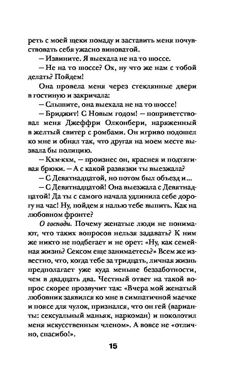 Бриджит остроумно описывает будни в своем дневнике, считает на его страницах бокалы вина, калории и сигареты. А в перерывах влюбляется и с удивительным талантом вляпывается в курьезные истории.