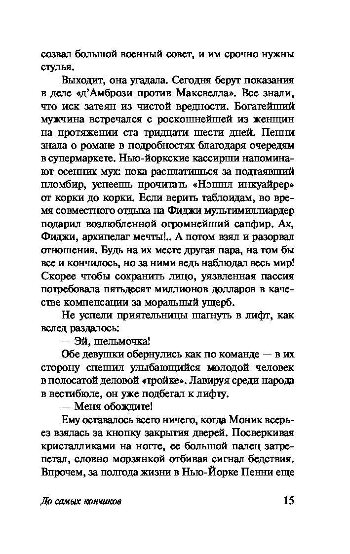 В книжном интернет-магазине Book24.kz можно заказать и купить книгу До самых кончиков по выгодной цене, гораздо ниже, чем в оффлайн книжных магазинах. Чтобы приобрести интересующее издание, необходимо всего лишь выбрать его из каталога и оформить заказ в режиме онлайн или по телефону. Предварительно вы можете просмотреть у нас на сайте фото и краткое содержание книги, почитать отзывы. Заказы мы отправляем во все города РК: Алматы, Астана, Актау, Актобе, Атырау, Караганда, Кокшетау, Костанай, Кызылорда, Павлодар, Петропавловск, Талдыкорган, Тараз, Уральск, Усть-Каменогорск, Шымкент, и другие. Доставка занимает несколько дней. Воспользовавшись нашим сервисом, вы уже вскоре сможете наслаждаться чтением любимой книги.