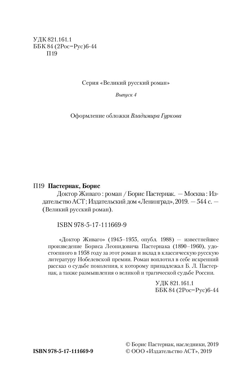 —Книга «Доктор Живаго» Пастернак Б.Л.