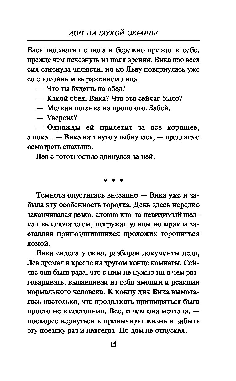Вика торопится закончить дела и поскорее уехать из недоброго места. Однако обстоятельства будто нарочно не отпускают девушку: внезапно пропадает семилетний сын соседки. Поиски не дают результатов. И снова, как и много лет назад, все считают, что в происшествии замешан кто-то из обитателей нехорошего дома…
