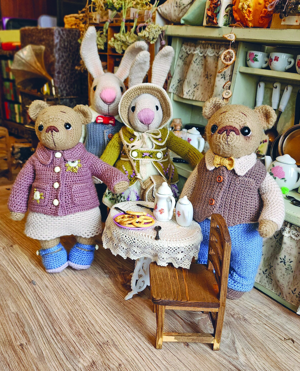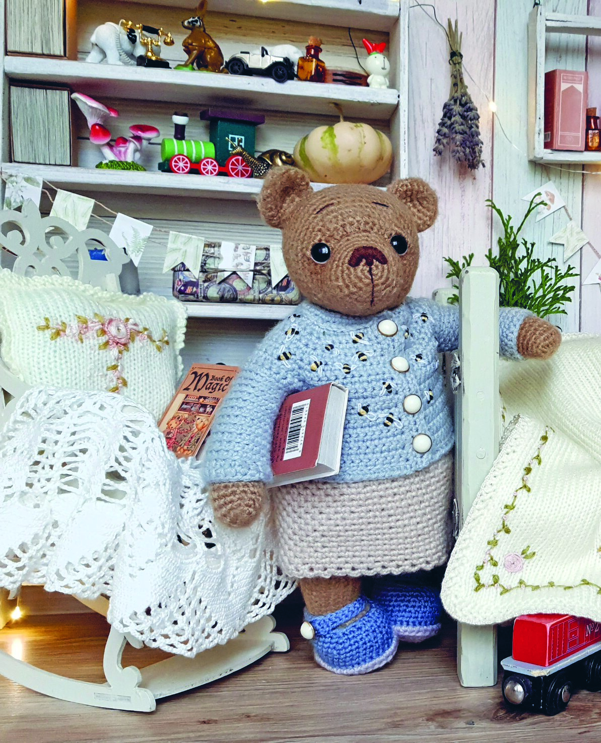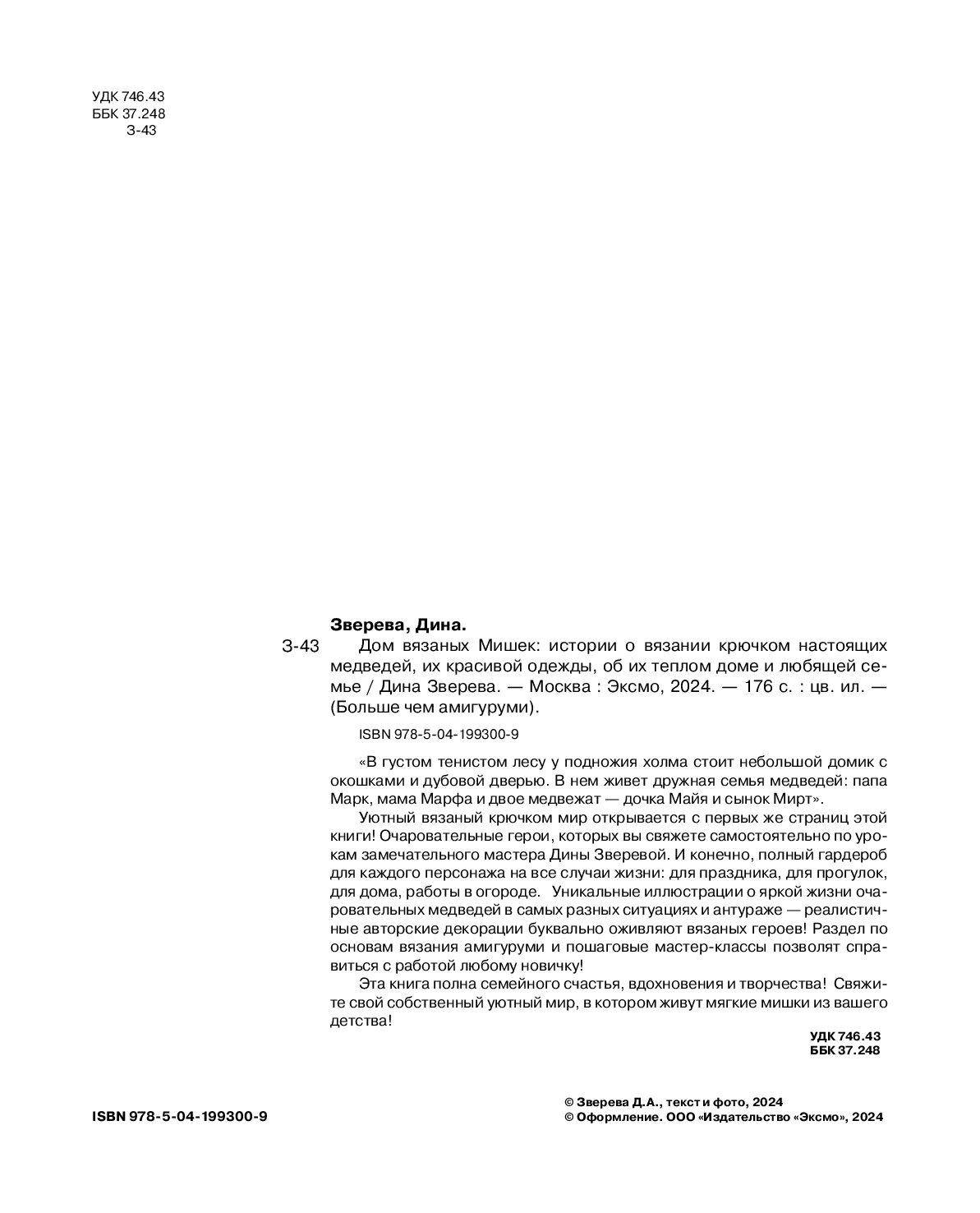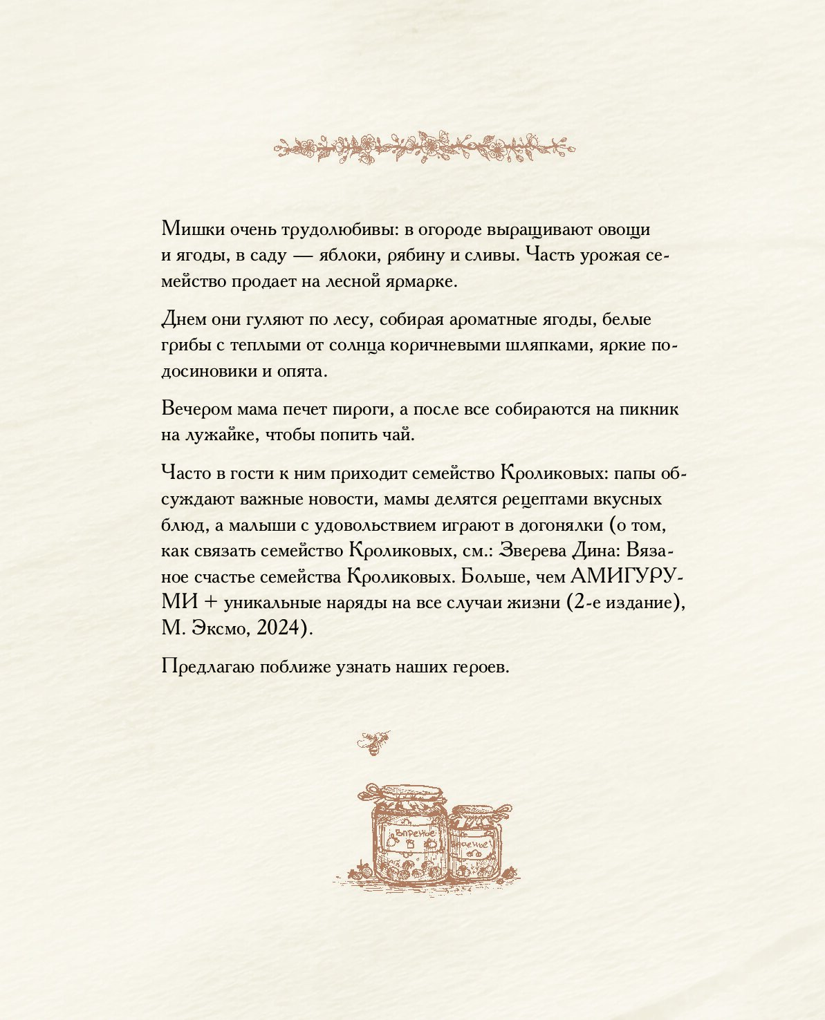 Этот чудесный мирок можно связать своими руками по понятным иллюстрированным мастер-классам замечательного мастера Дины Зверевой! Папа-медведь, мама-медведица, крохотные медвежата — сынок и дочка. А еще — куча красивой одежды на любой случай, от праздника до рутины. И все это просто связано крючком! Какое же это счастье — отвлечься от повседневной суеты и творить свой собственный уютный мир на радость себе и детям!