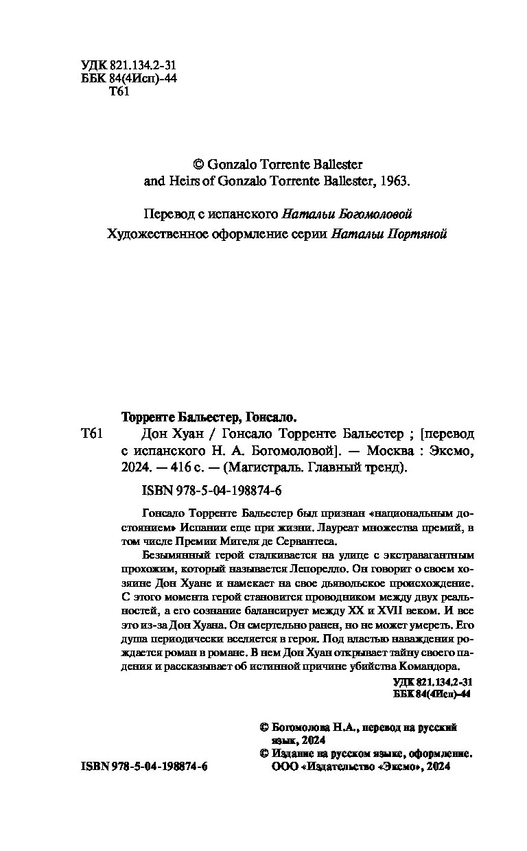 «Дон Хуан» — это роман-мистификация. В нем слышны отголоски «Фауста» Гете, «Мастера и Маргариты» Булгакова, «Волхва» Фаулза и вариаций легенд о Доне Жуане.