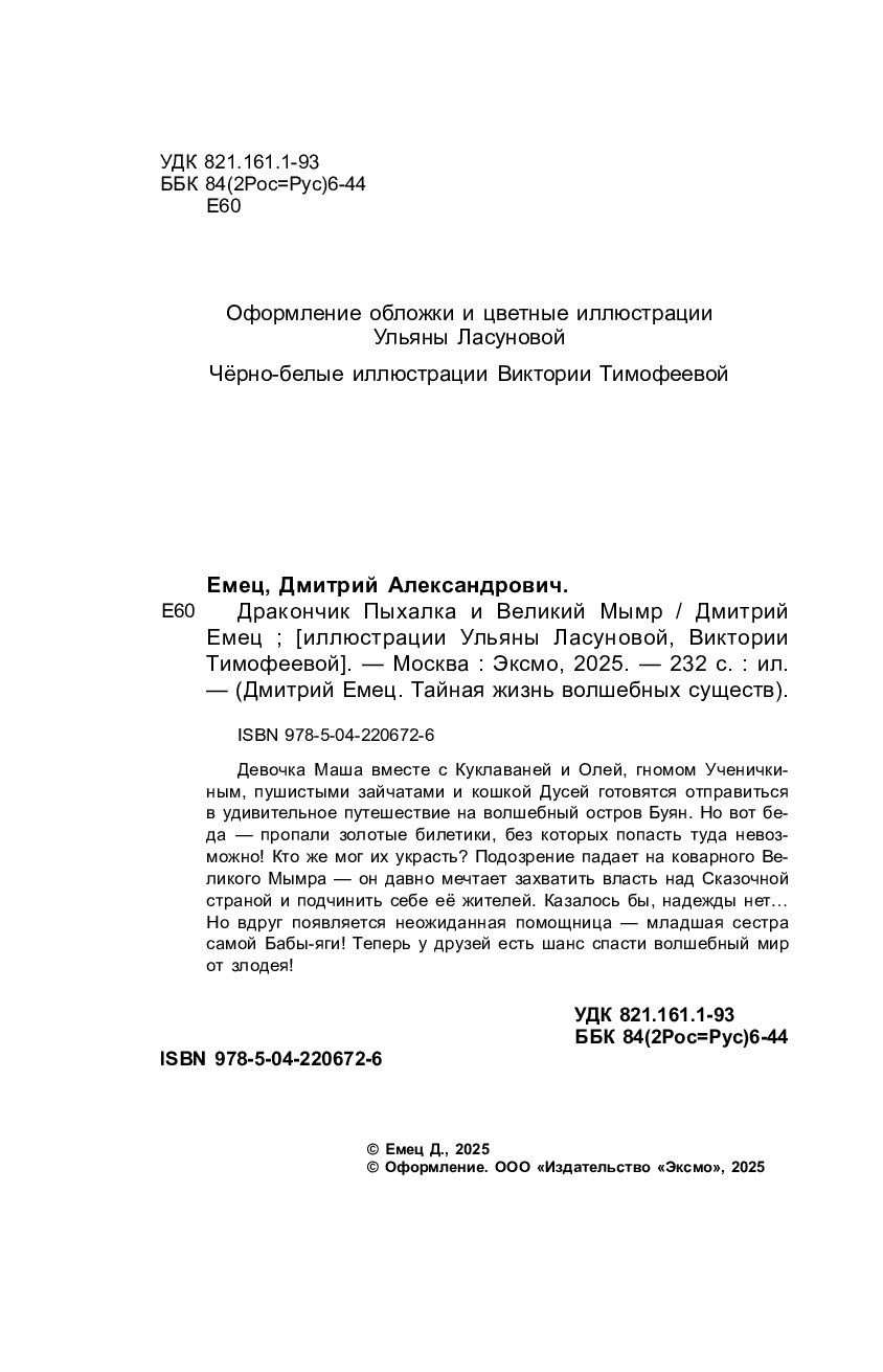 Автор «Дракончика Пыхалки» — знаменитый российский писатель Дмитрий Емец, известный не только книгами о «Тане Гроттер», но и историями для детей помладше, такими как «Дракончик Пыхалка», «Приключения домовят» и «Бунт пупсиков»! Общий тираж книг автора уже более 7 миллионов экземпляров!