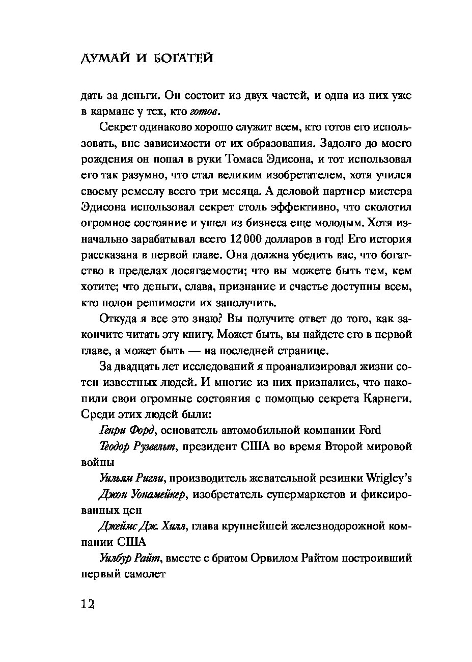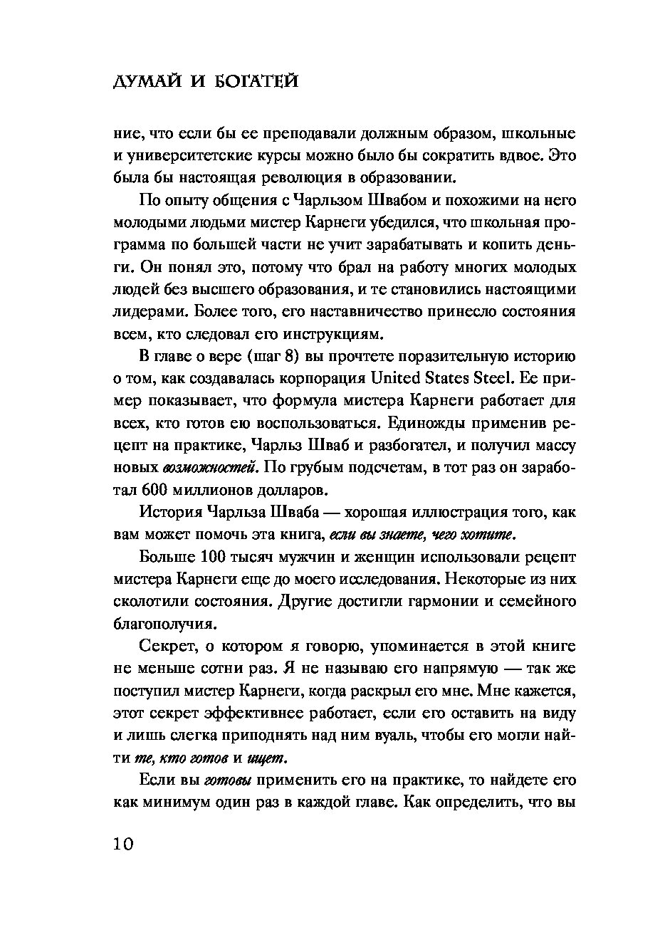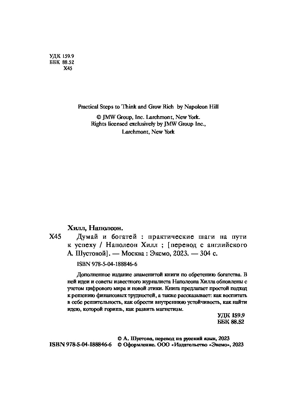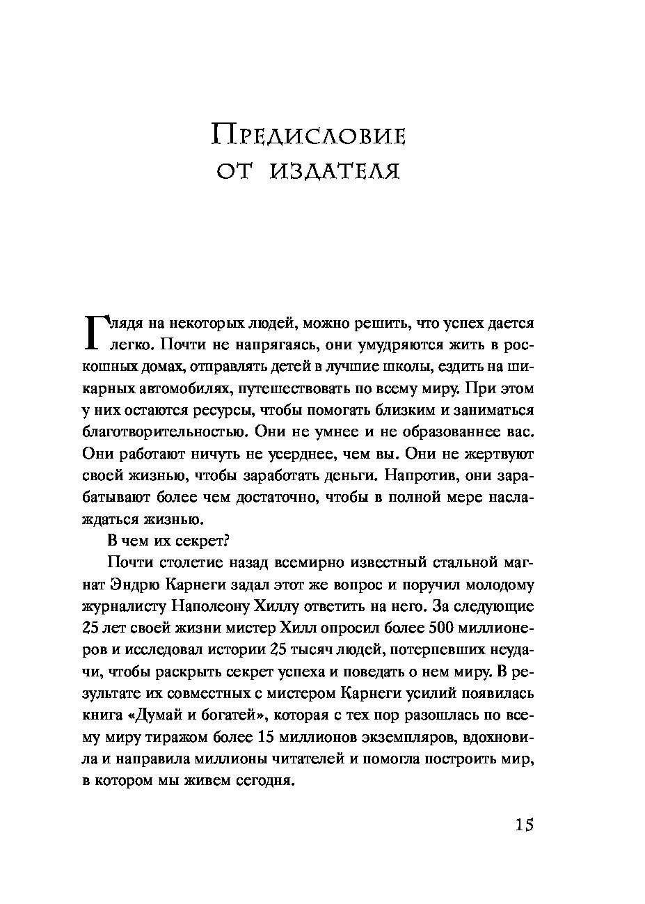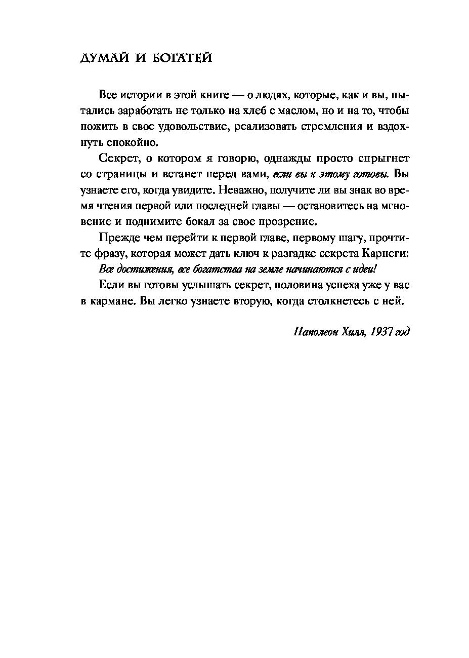 Эта книга — обновленное и переработанное издание всемирно известного бестселлера Наполеона Хилла. В ней акцент смещен с того, что делать, на как это сделать. Как перехитрить свои страхи, как найти продающую идею, как овладеть формулой уверенности в себе, как развить настойчивость и обогатиться, не жертвуя ценностями.