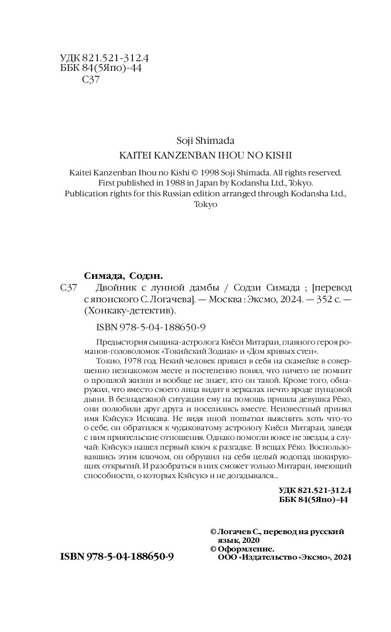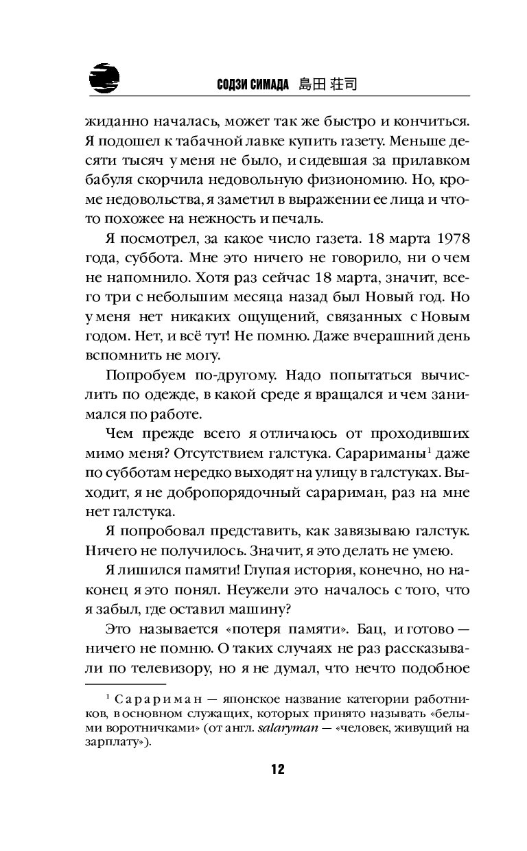 «Симада умеет сочетать совершенно фантастические преступления с логичными и прозрачными решениями этих загадок — и способен завести в тупик самого проницательного читателя». — Publishers Weekly