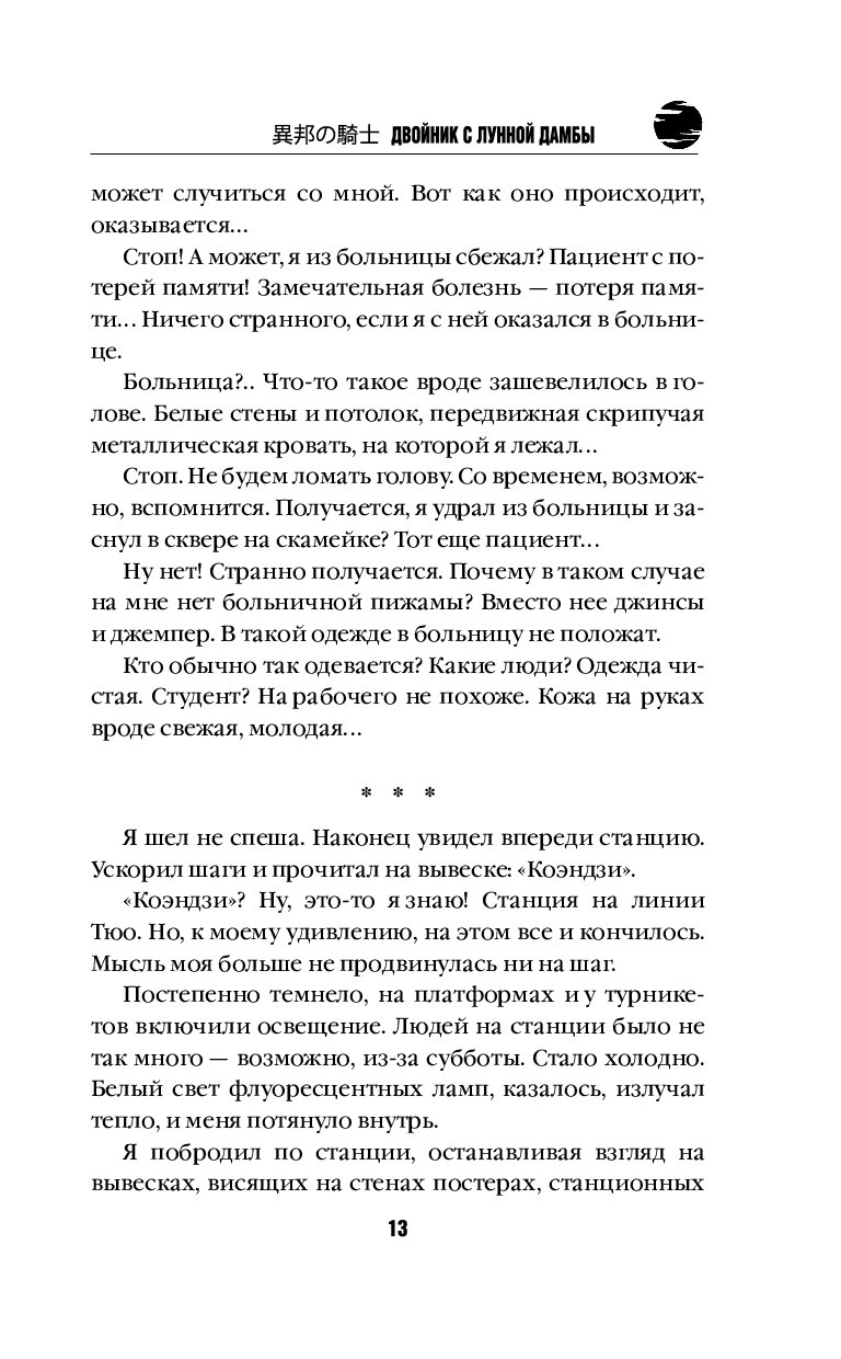 Очнувшись, этот человек понял, что не знает, кем является. Память исчезла. Вместо лица в зеркалах — нечто вроде пунцовой дыни. И ни одной зацепки. В отчаянных поисках своей личности он нашел любовь, девушку по имени Рёко, которая прикипела к нему, несмотря на роковую тайну. Обрел он и странного, но безумно притягательного приятеля — астролога, гадателя, меломана, гитарного виртуоза и остроумного чудака Киёси Митараи. Но вскоре выяснилось, что Рёко не та, за кого выдает себя, что она ведет непонятную жестокую игру. Да и Митараи оказался вовсе не только забавным асоциальным эксцентриком, как можно было подумать…