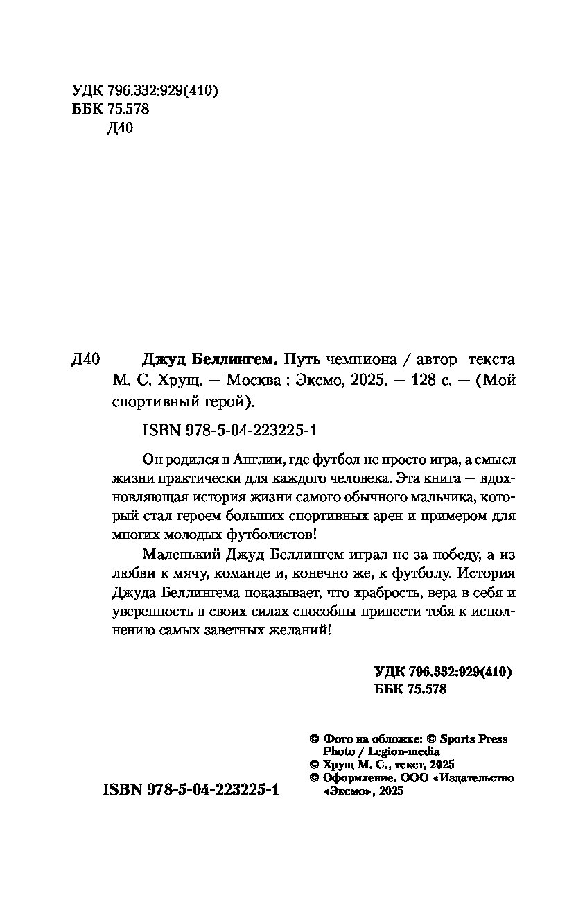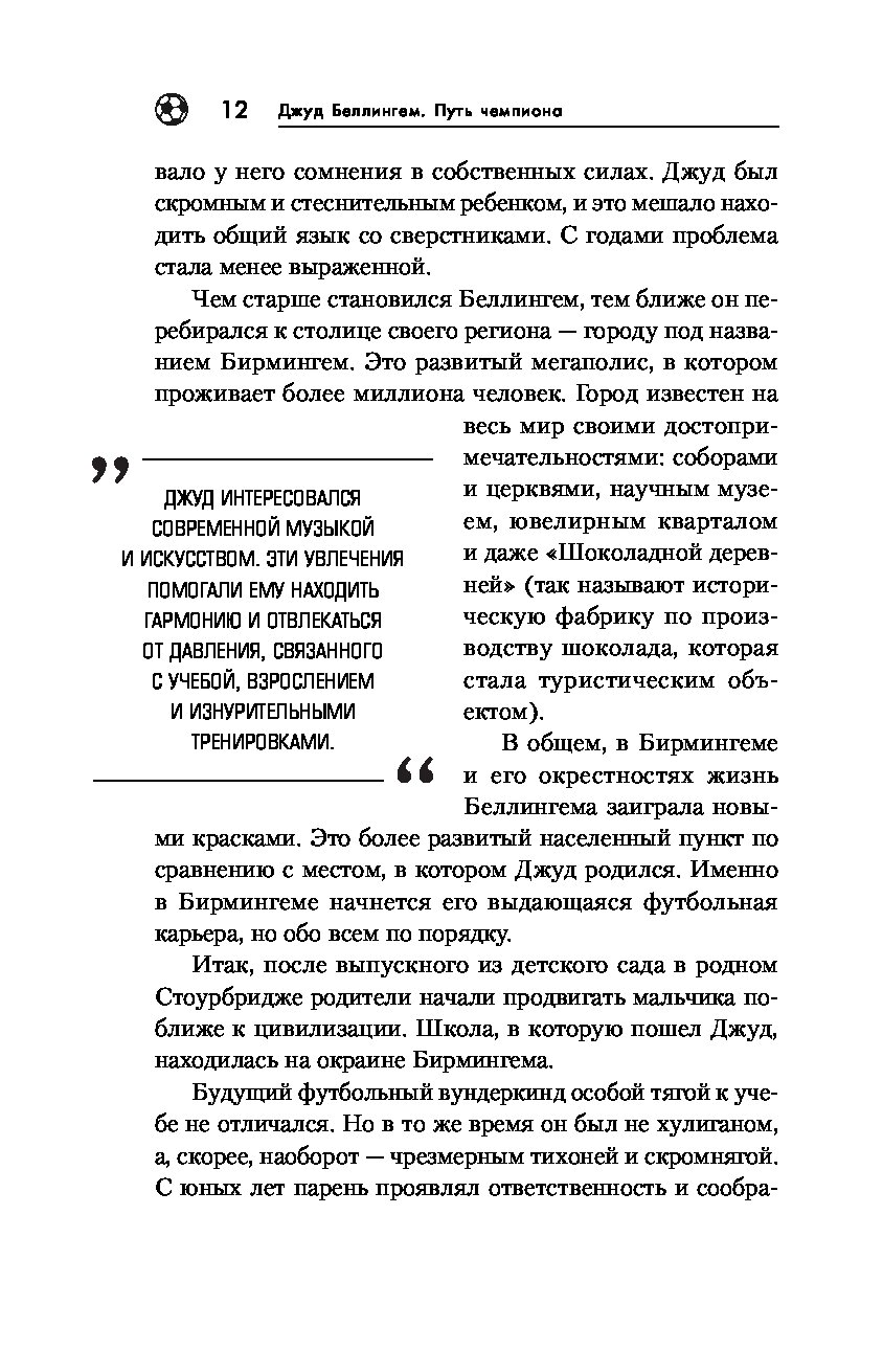 Маленький Джуд Беллингем играл не за победу, а из любви к мячу, команде и, конечно же, к футболу. Эта книга — вдохновляющая история жизни самого обычного мальчика, который стал героем больших спортивных арен и примером для многих молодых футболистов!