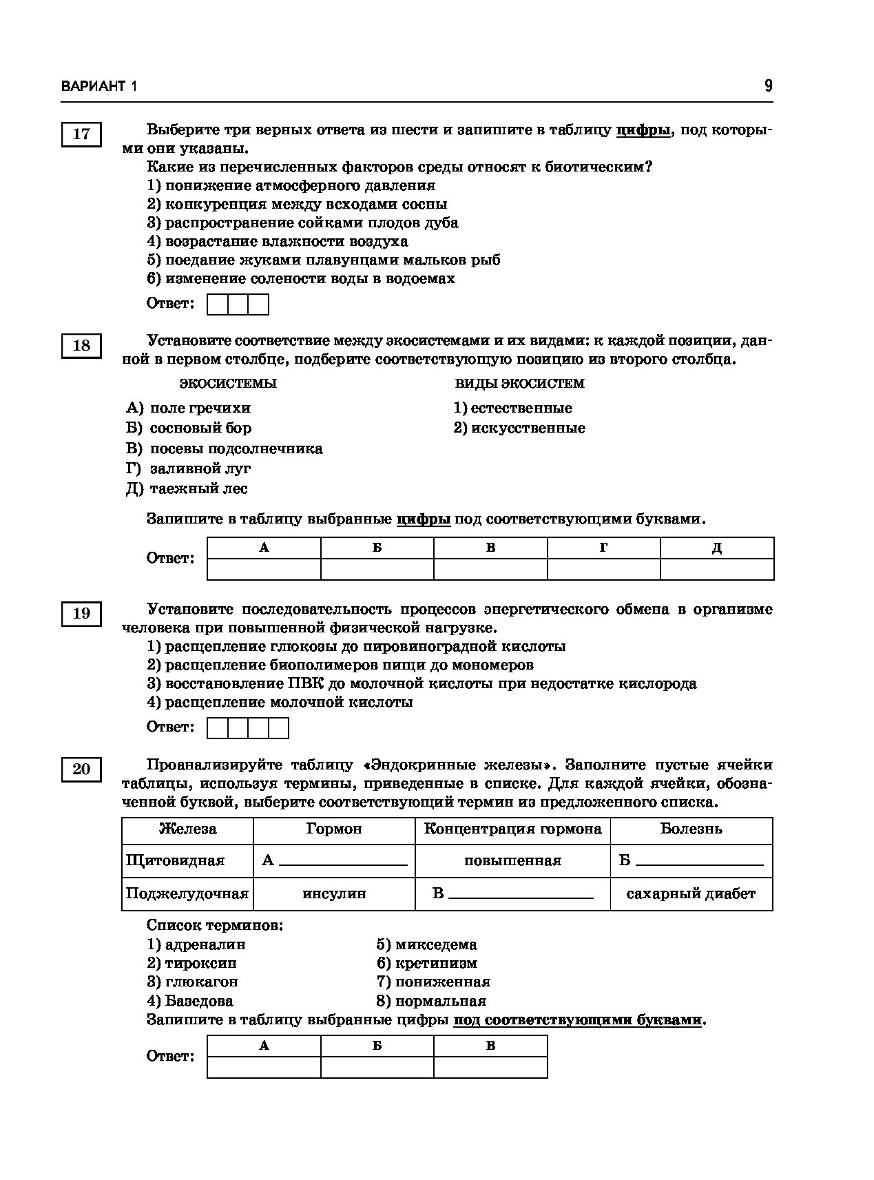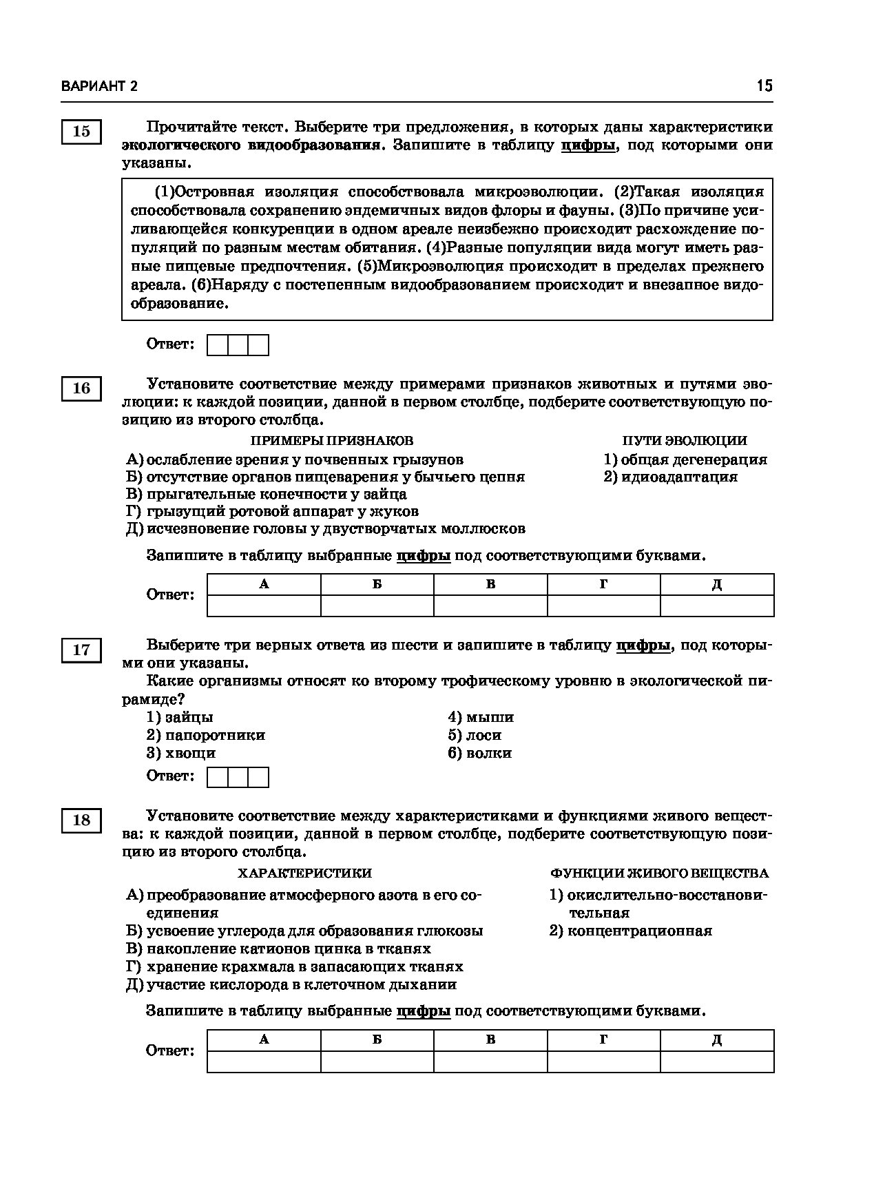 Каждый вариант составлен в соответствии с требованиями единого государственного экзамена по биологии, включает задания разных типов и уровня сложности.