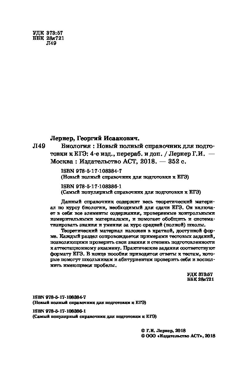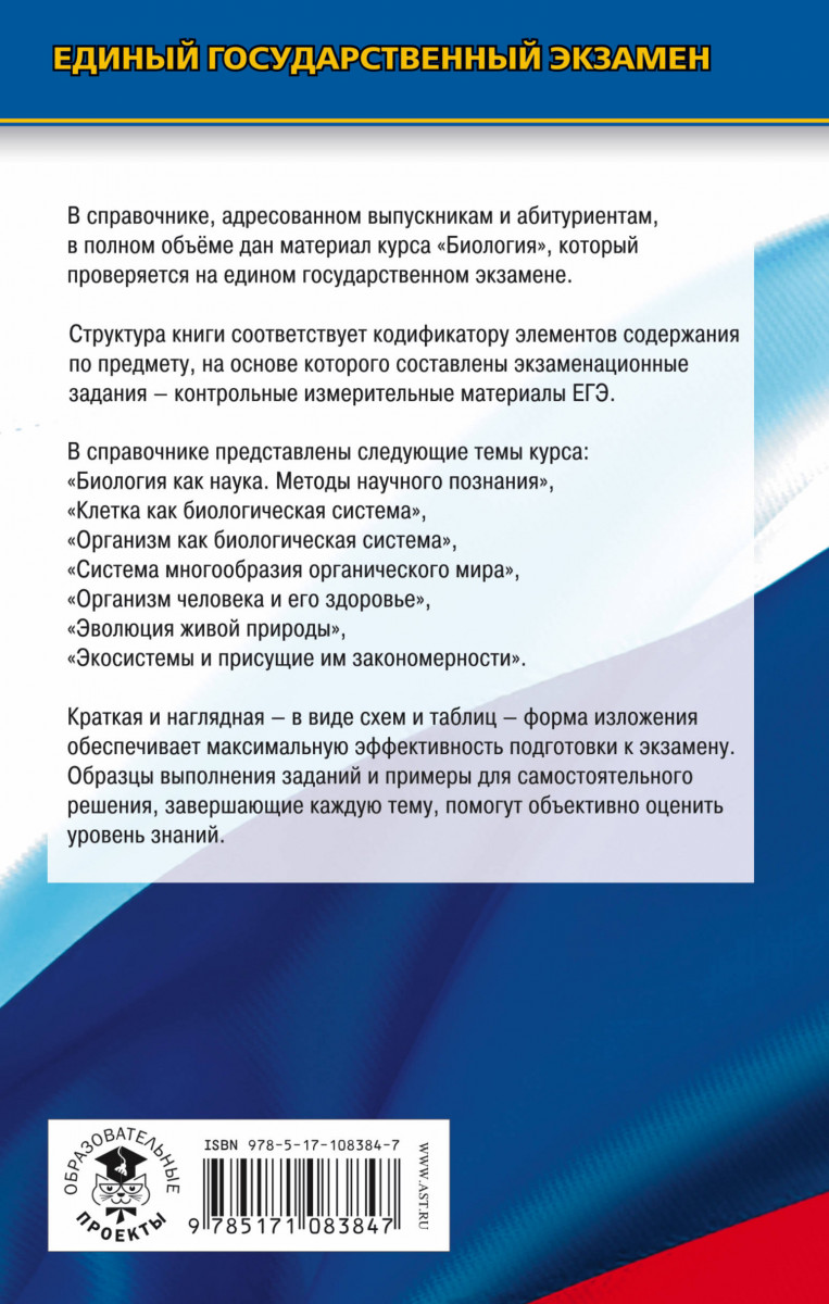 Справочник содержит весь теоретический материал по курсу биологии, необходимый для сдачи ЕГЭ. Он включает в себя все элементы содержания, проверяемые контрольно-измерительными материалами, и помогает обобщить и систематизировать знания и умения за курс средней (полной) школы.