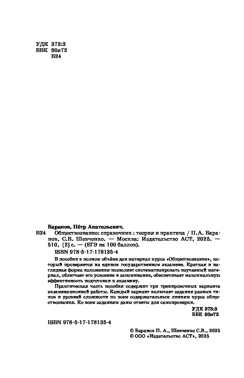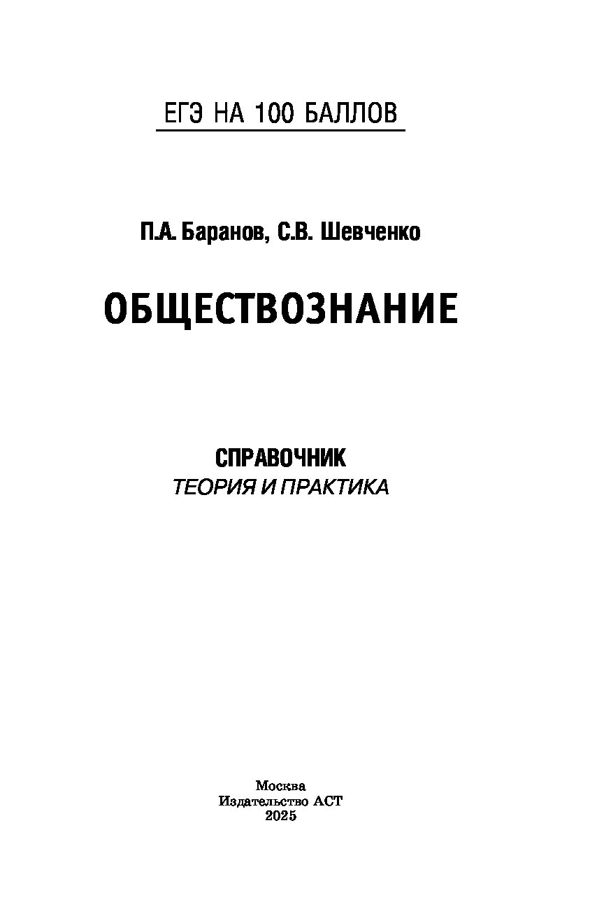 — «ЕГЭ. Обществознание. ЕГЭ на 100 баллов. Справочник: Теория и практика» Баранов П.А., Шевченко С.В.