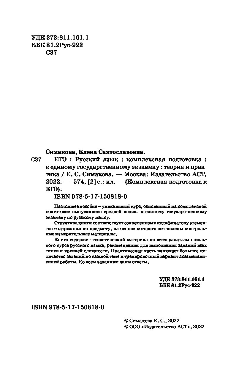 — «ЕГЭ. Русский язык. Комплексная подготовка к единому государственному экзамену: теория и практика» Симакова Е.С.