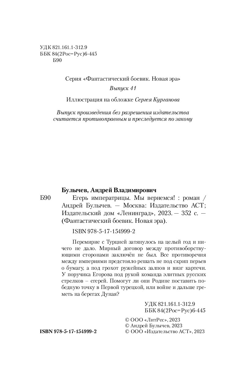«Егерь Императрицы. Мы вернемся!» Булычев А.В.